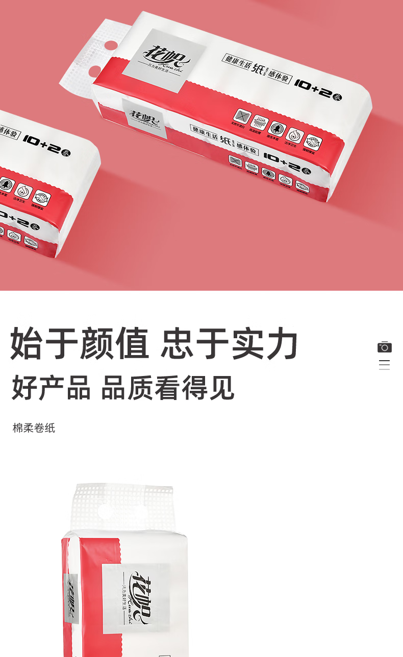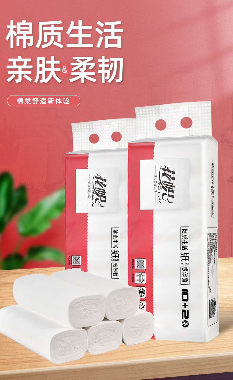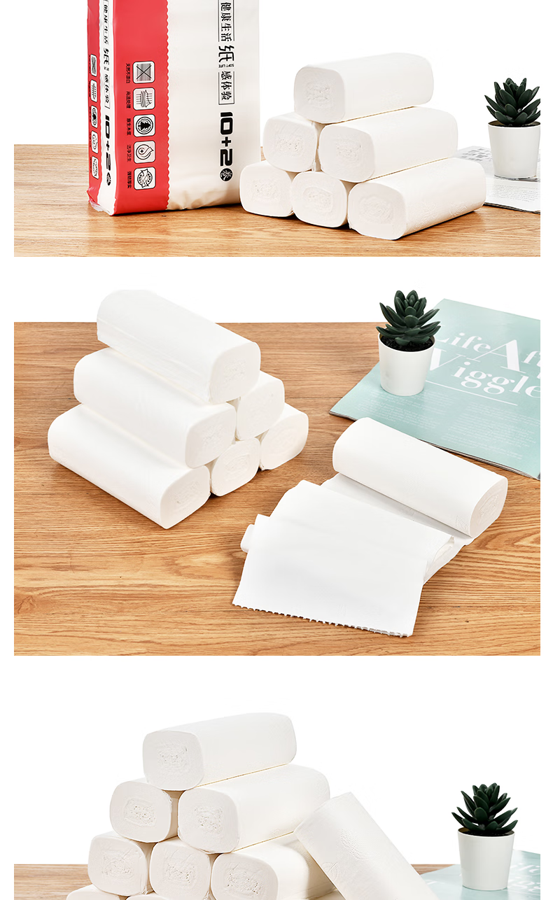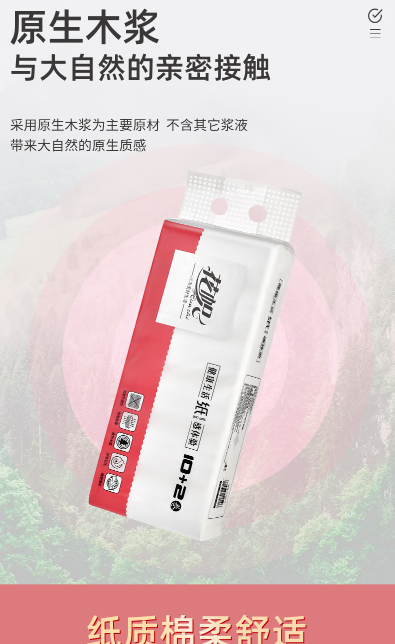 【分仓直发包邮】浅柔12卷白色卫生纸卷纸无芯卷筒纸5层加厚ZJ1010