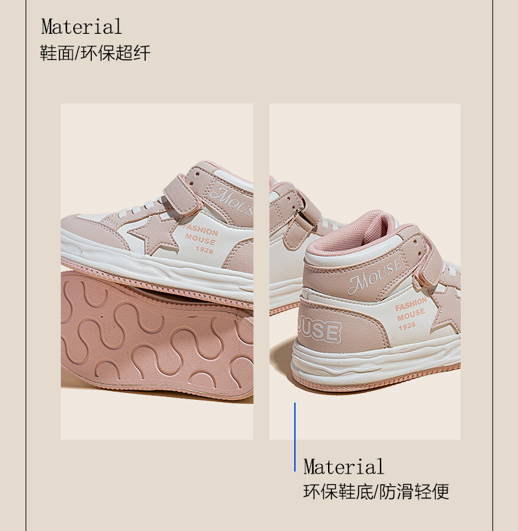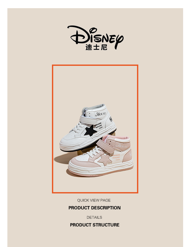 迪士尼儿童鞋加绒运动鞋2024冬新款棉鞋高帮鞋男孩女孩儿童板鞋M2238773