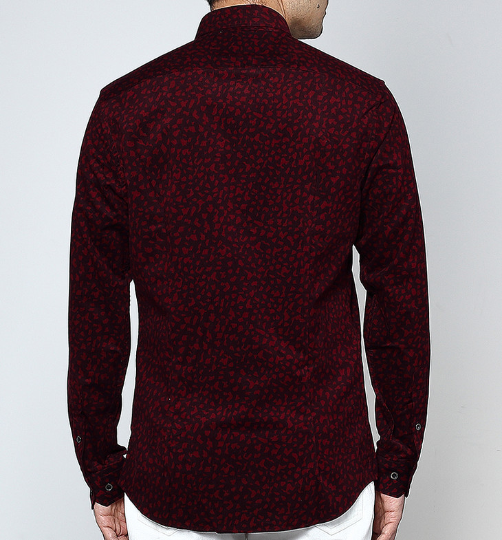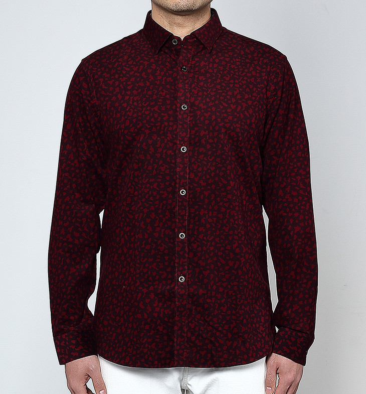 Marco Azzali 暗红色灯芯绒印花衬衫 C3720A00