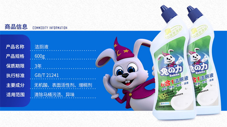 兔之力洁厕液双瓶装(森林香)600g*2(共4瓶)