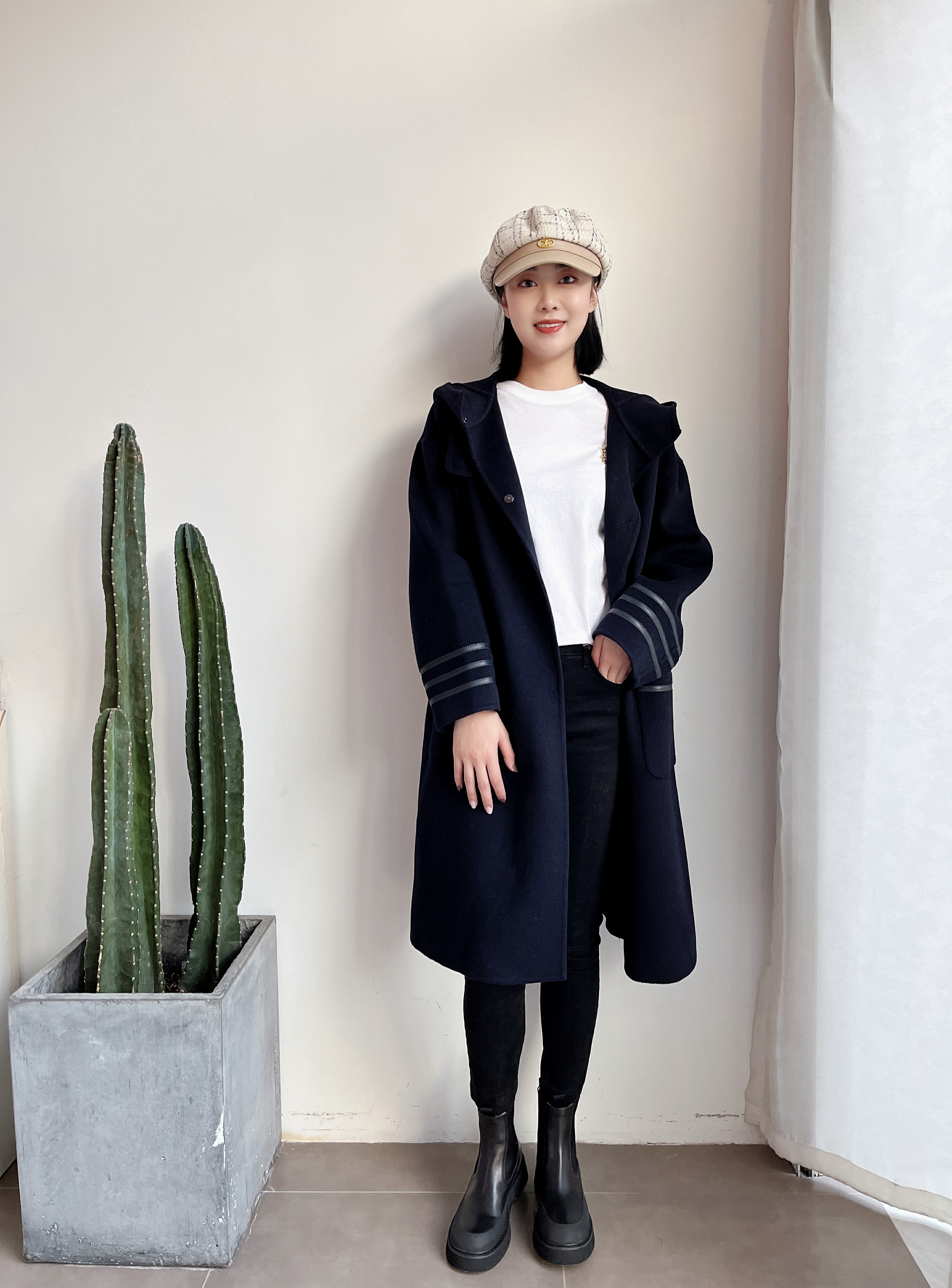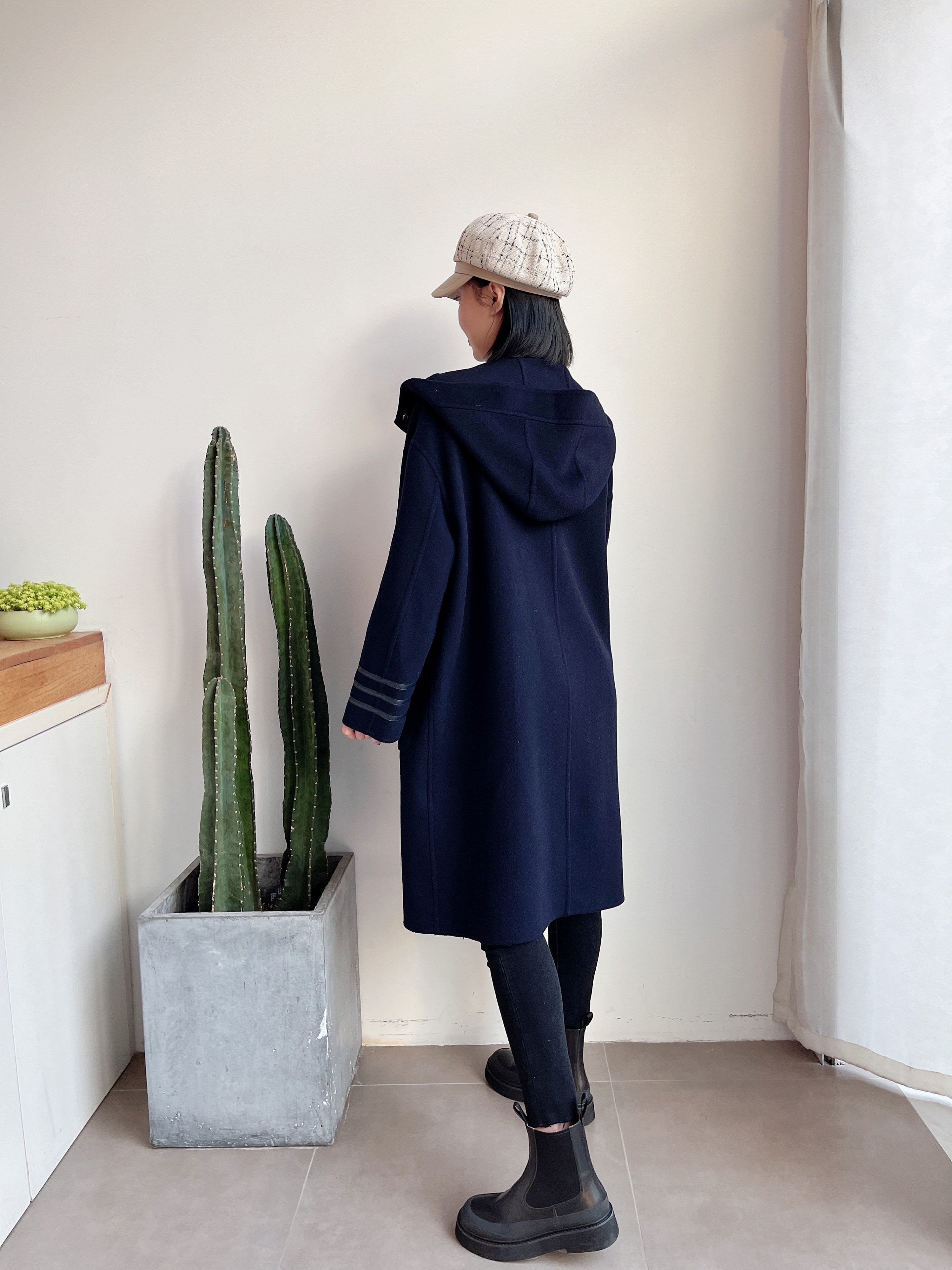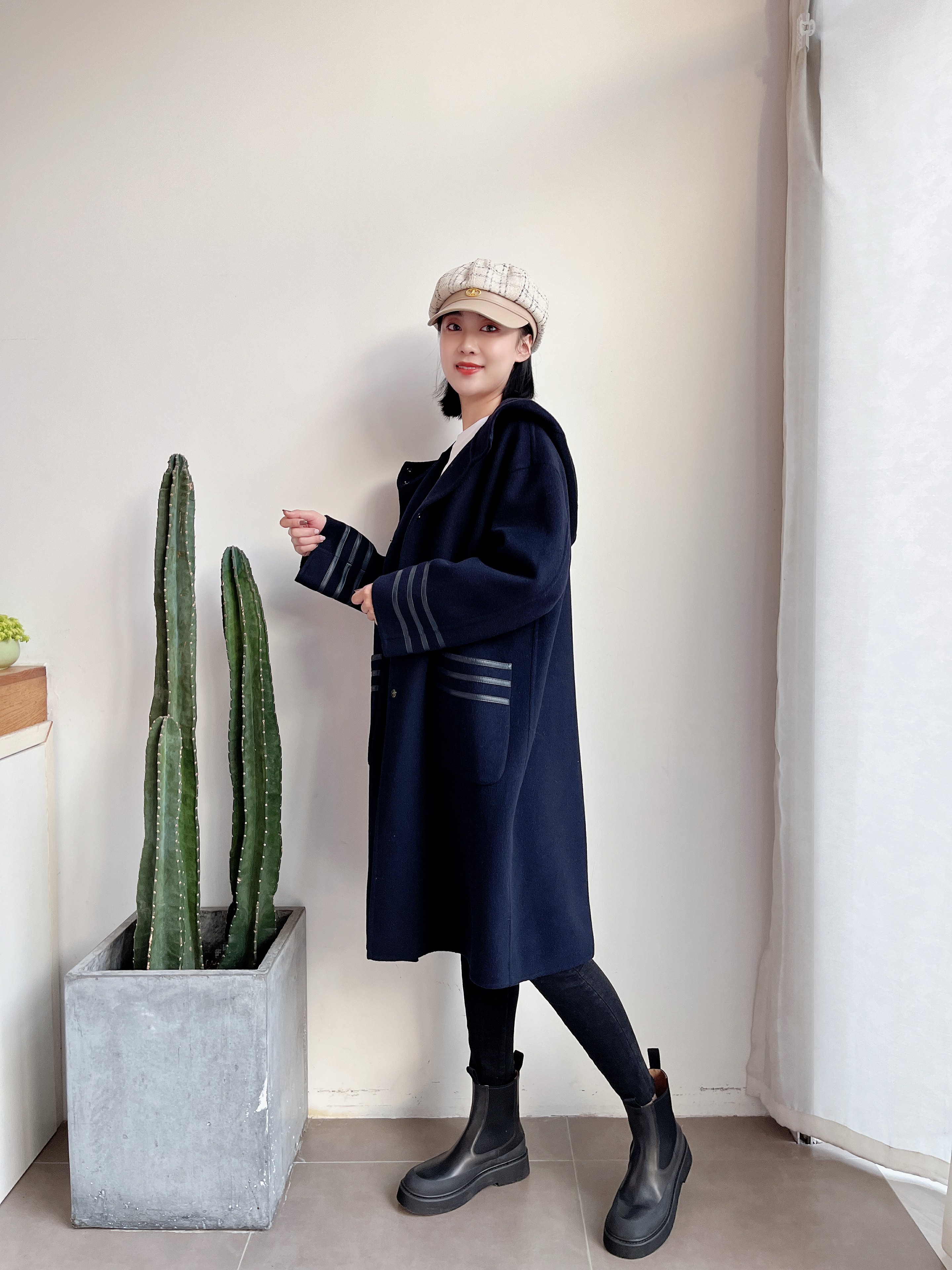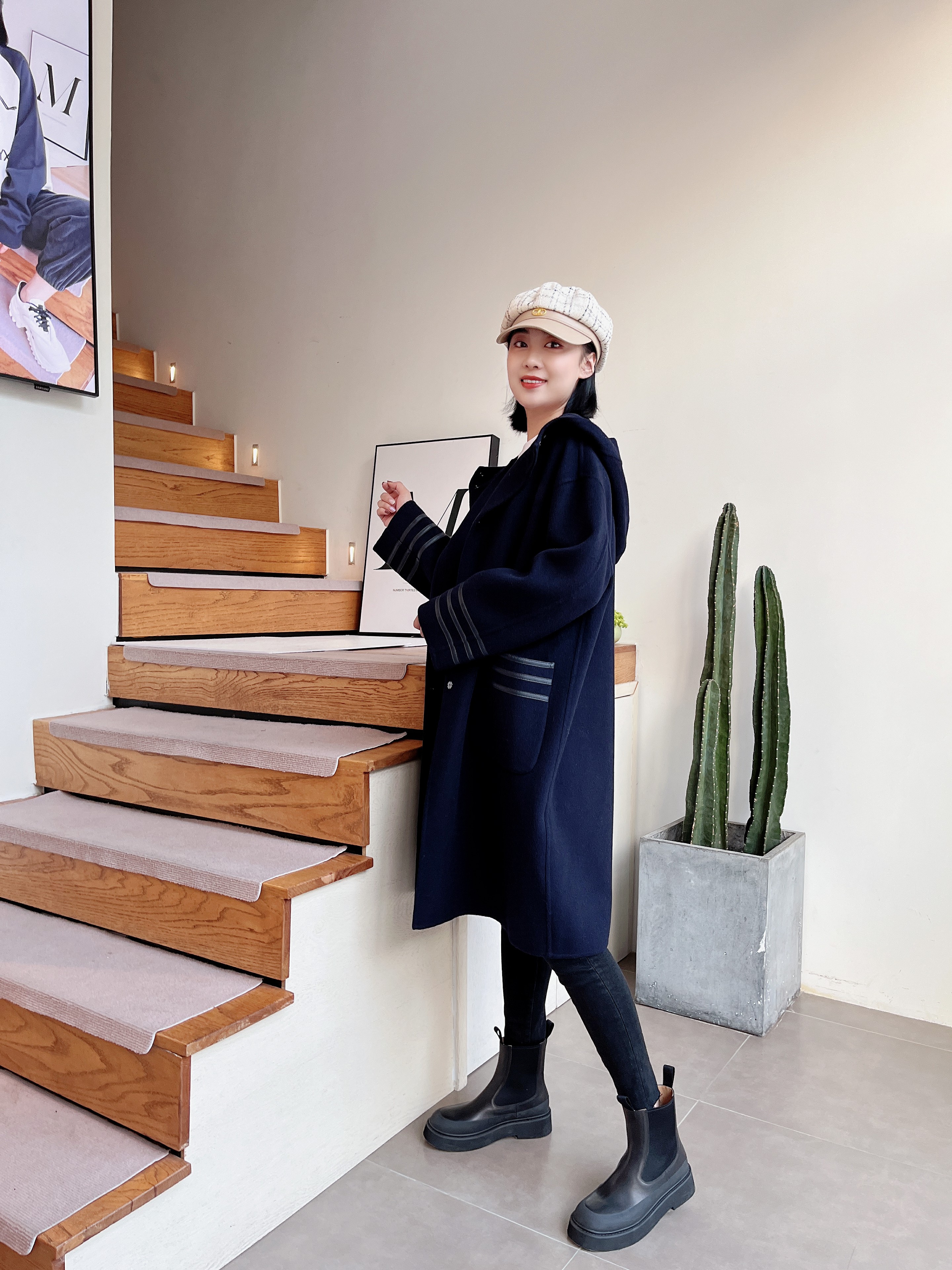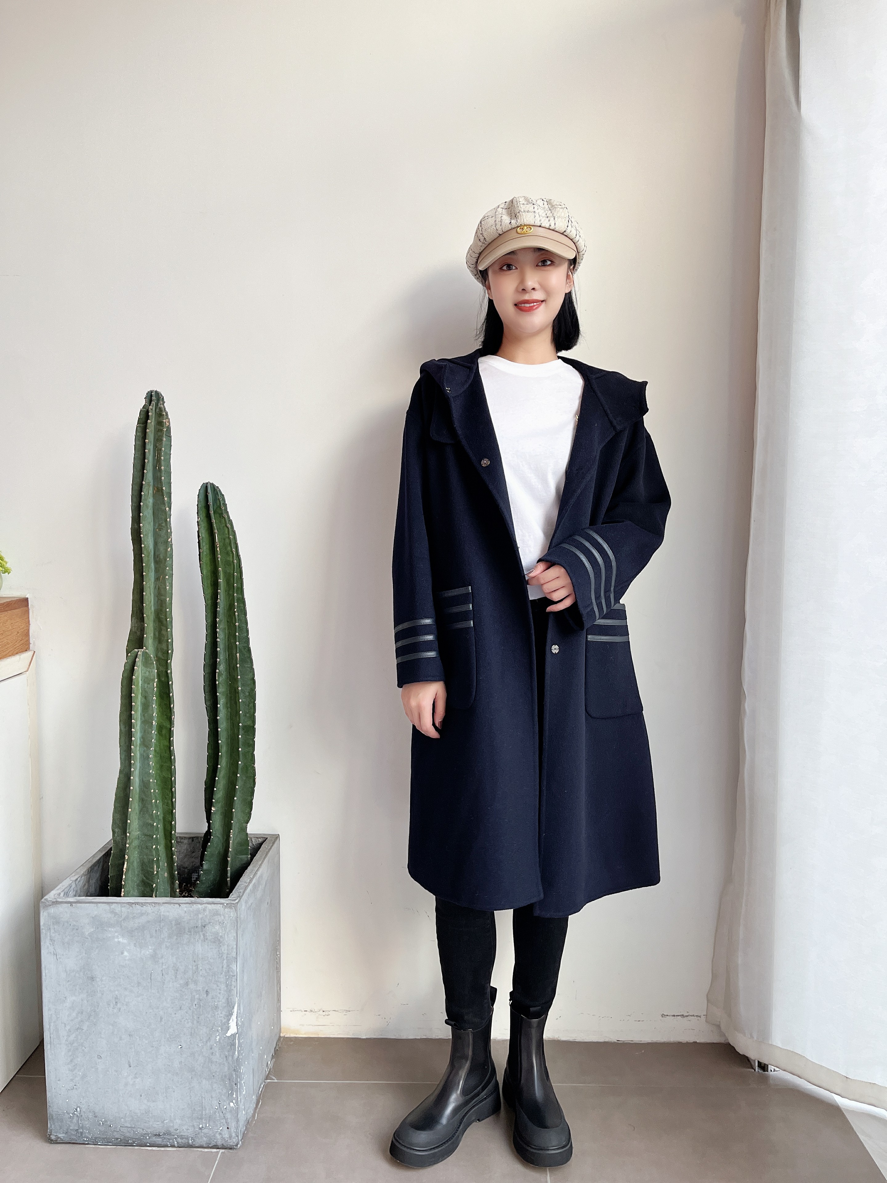 休闲连帽中长款减龄双面羊绒大衣
