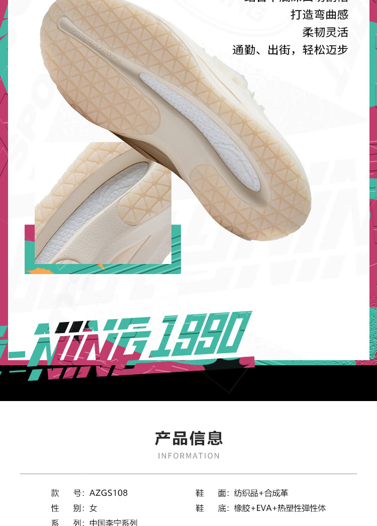 中国李宁云游女子一体织轻量高回弹潮流运动鞋AZGS108