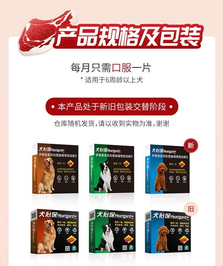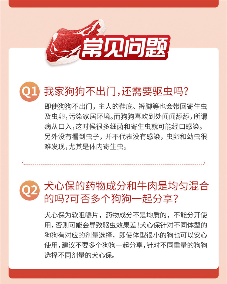 犬心保狗狗体内驱虫药牛肉咀嚼片蛔虫药