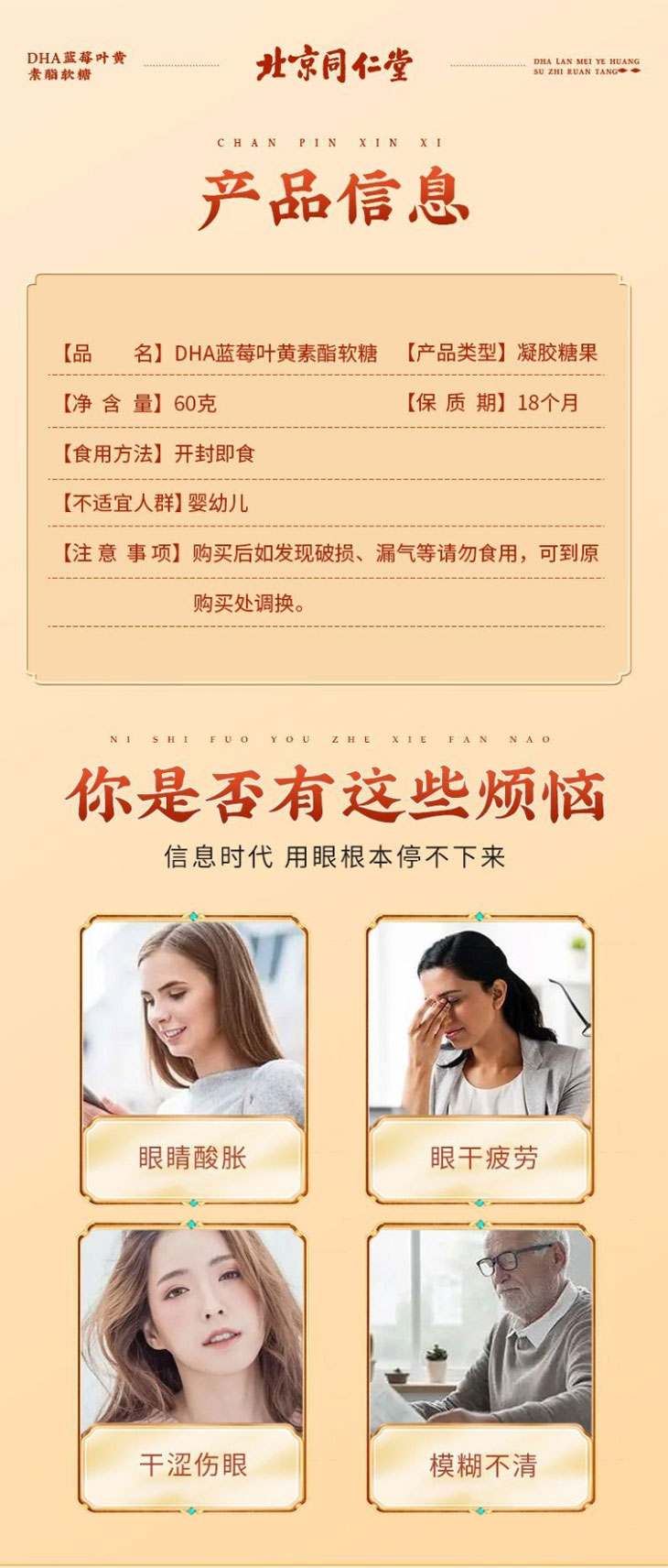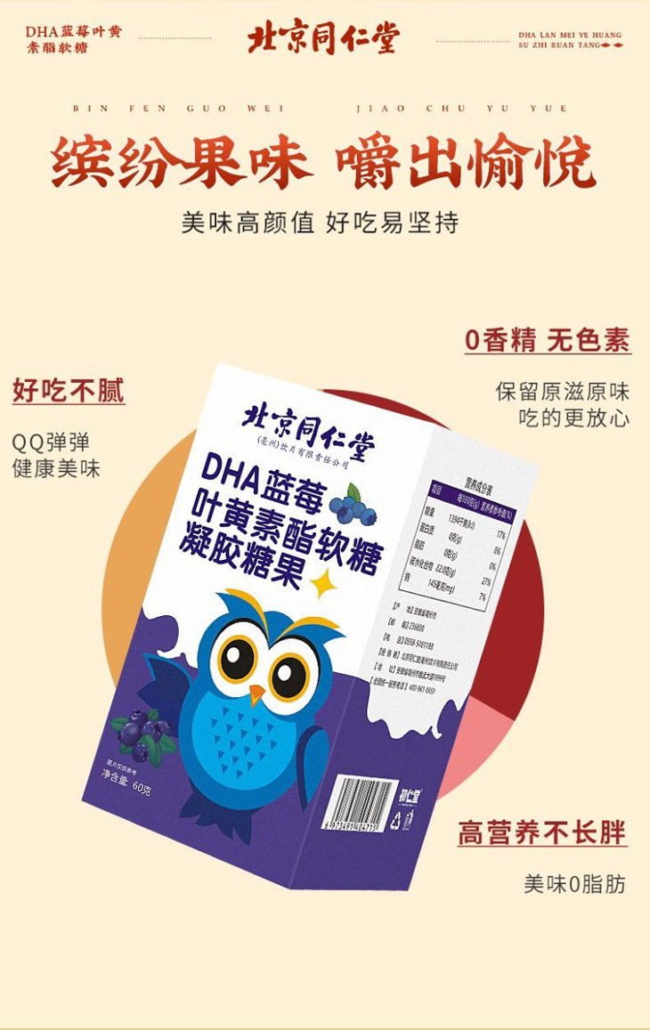 北京同仁堂DHA蓝莓叶黄素酯软糖眼睛的自然好营养