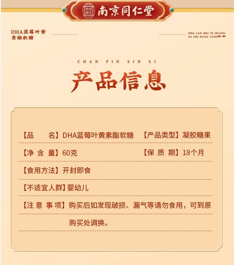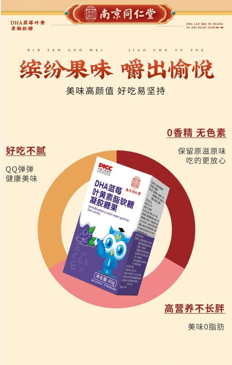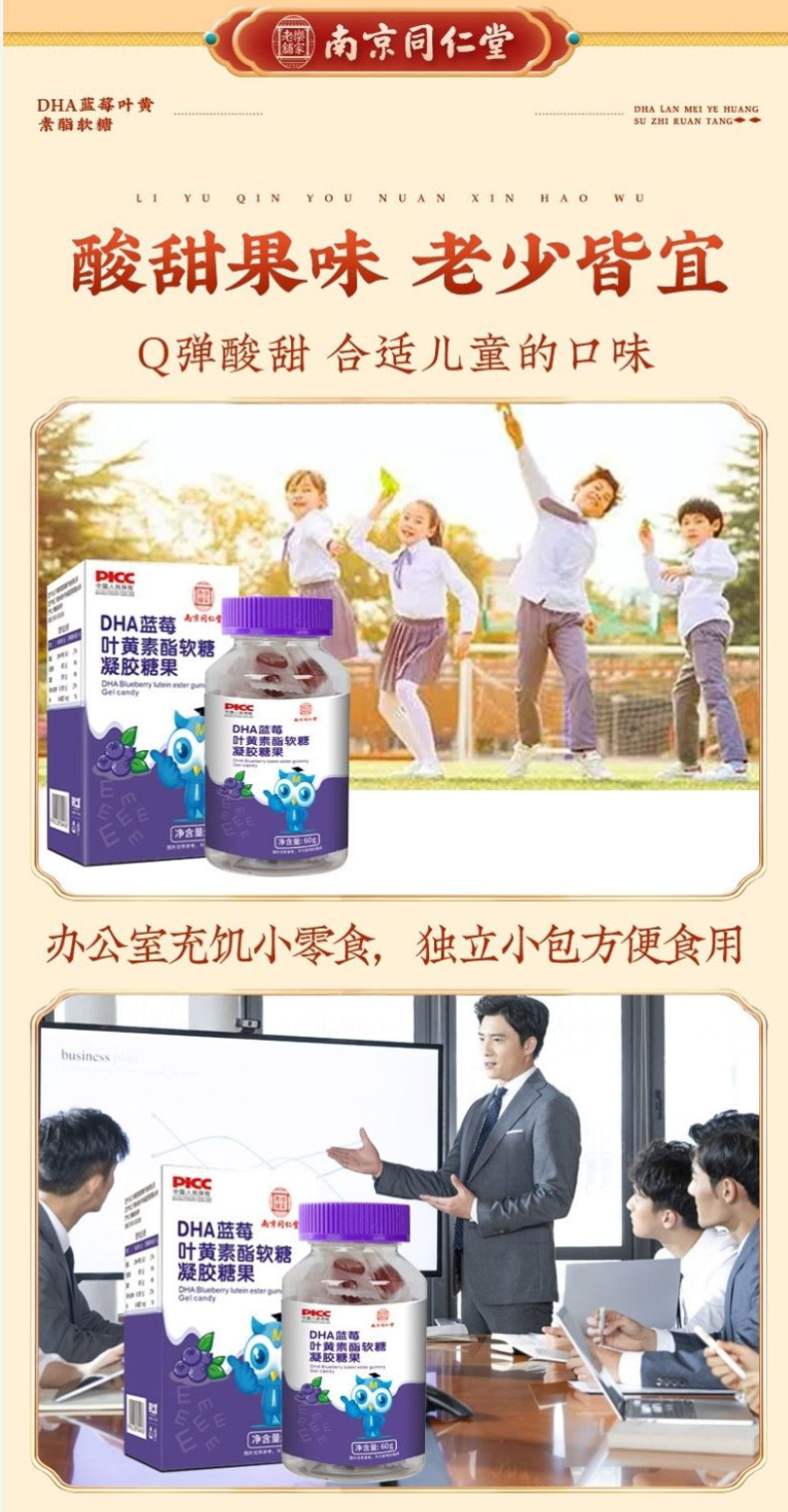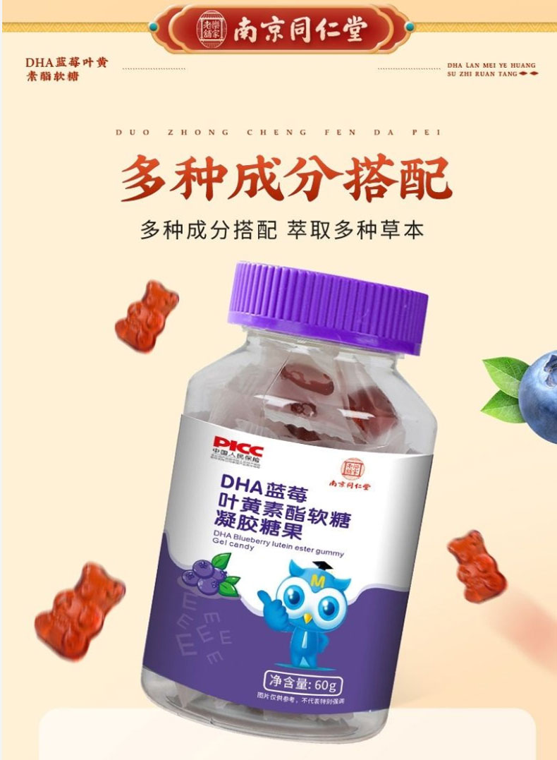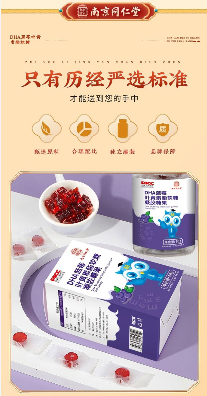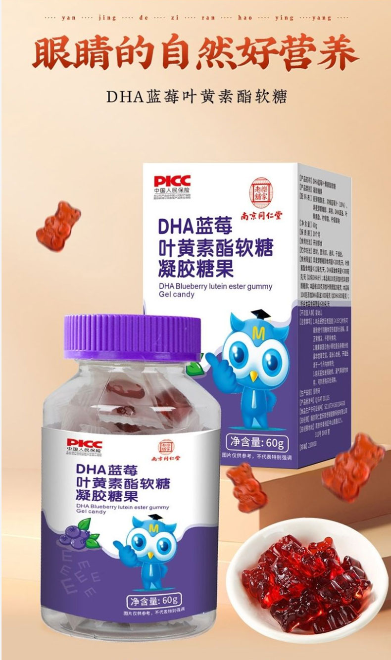 南京同仁堂DHA蓝莓叶黄素酯软糖眼睛的自然好营养