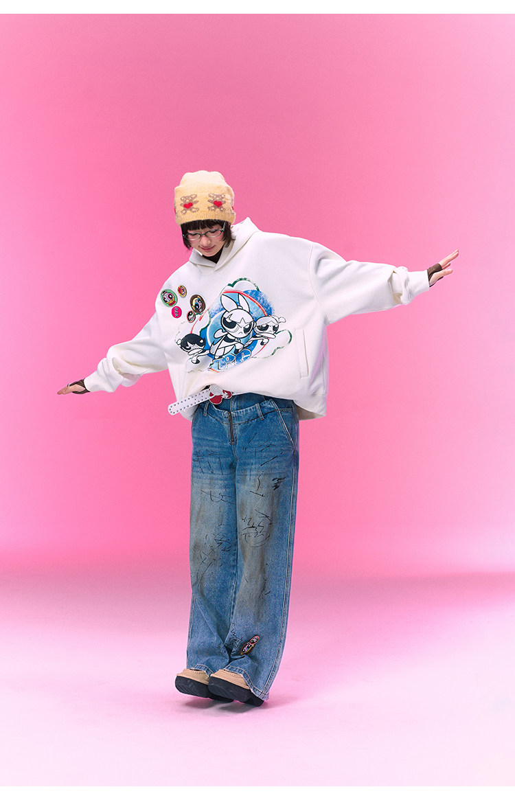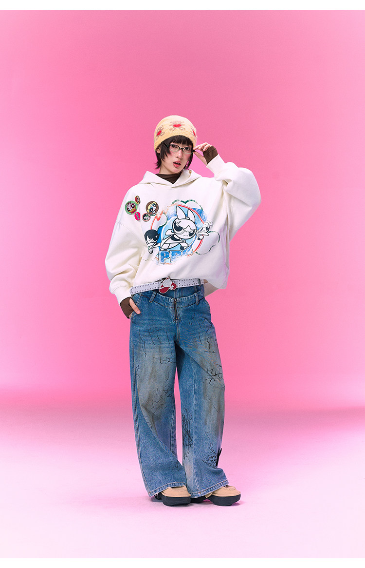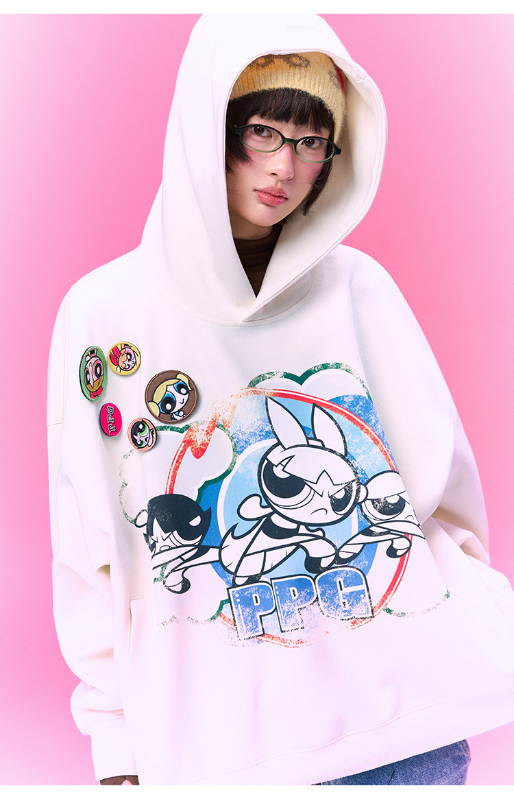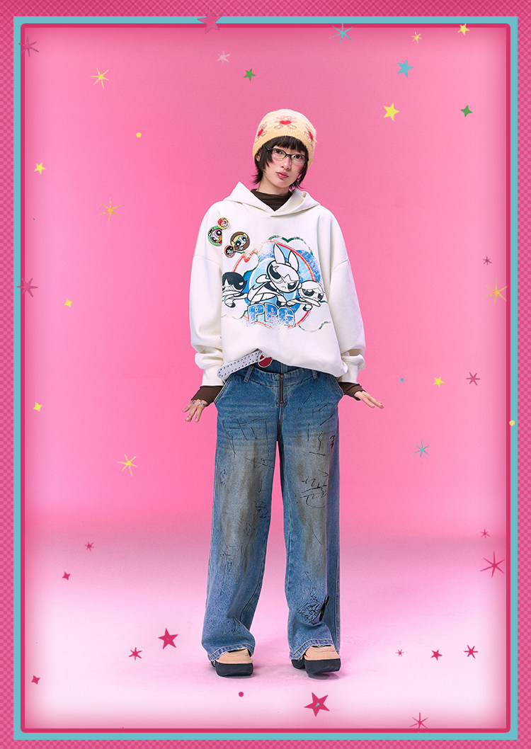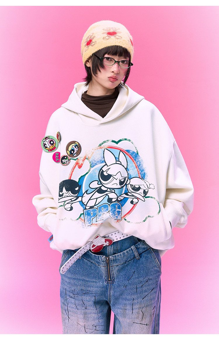 【飞天小女警联名】BJHG不计后果美式卫衣女春季做旧印花连帽上衣
