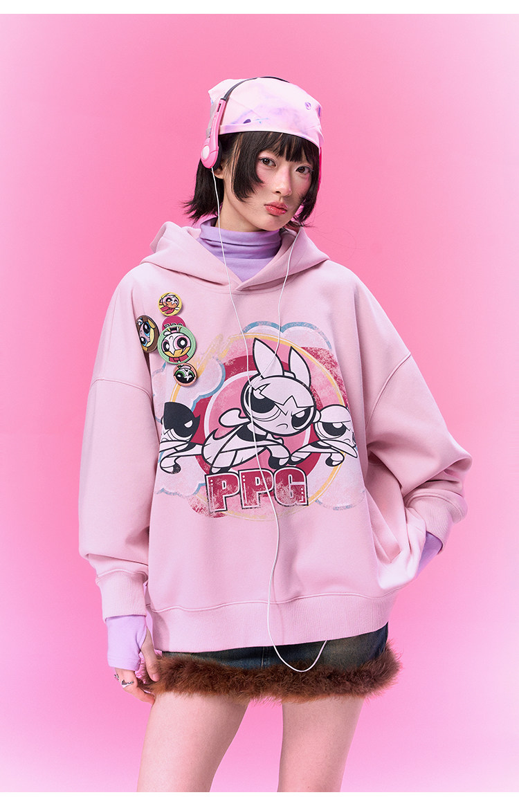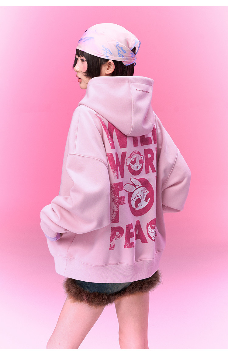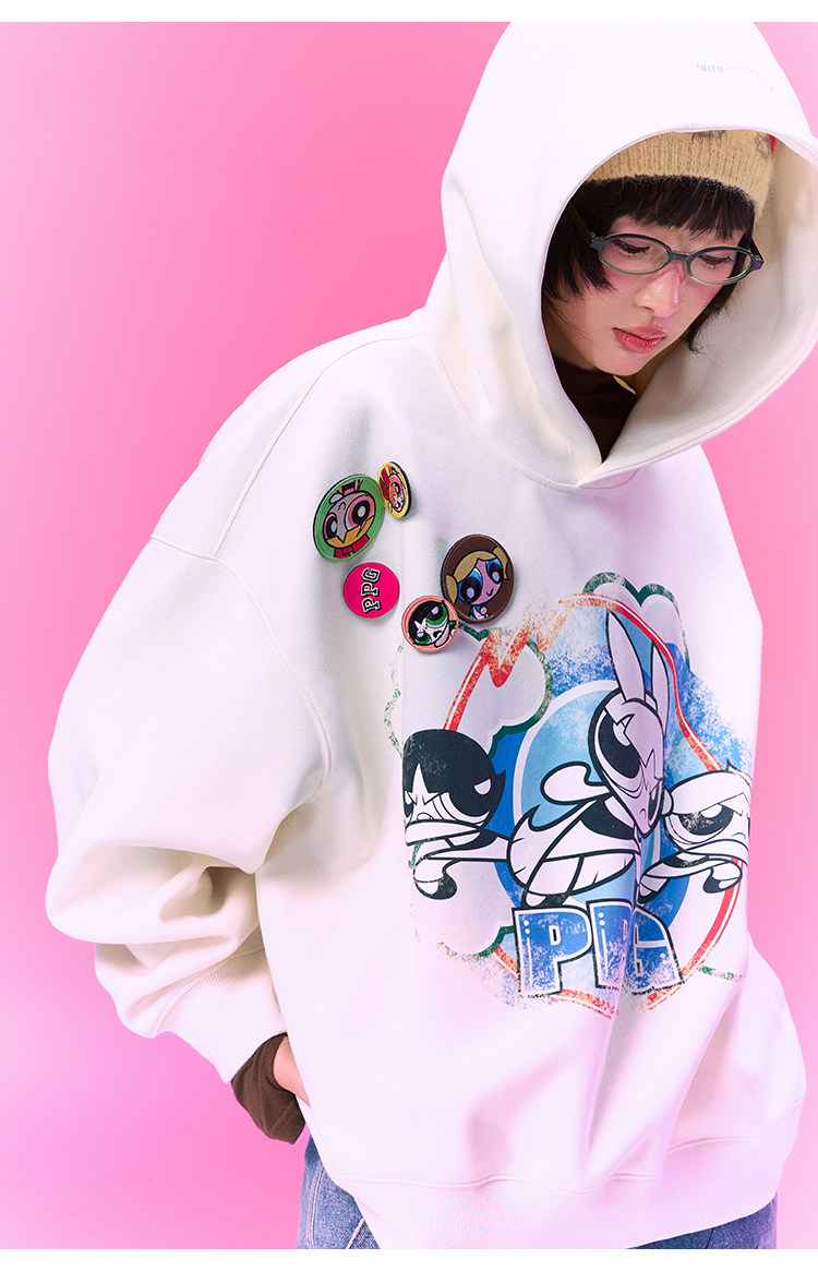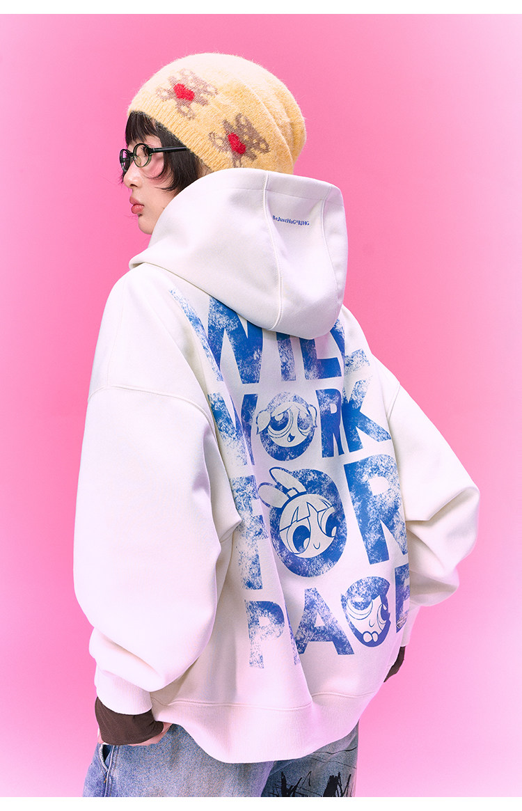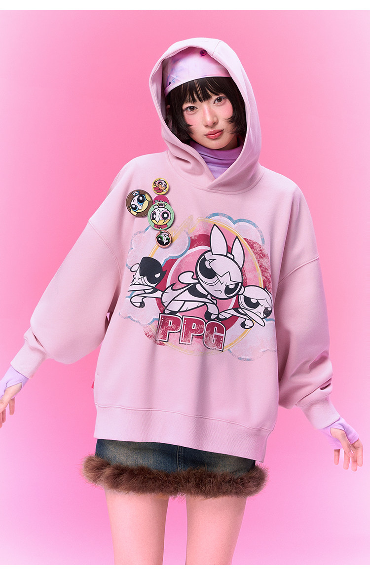 【飞天小女警联名】BJHG不计后果美式卫衣女春季做旧印花连帽上衣