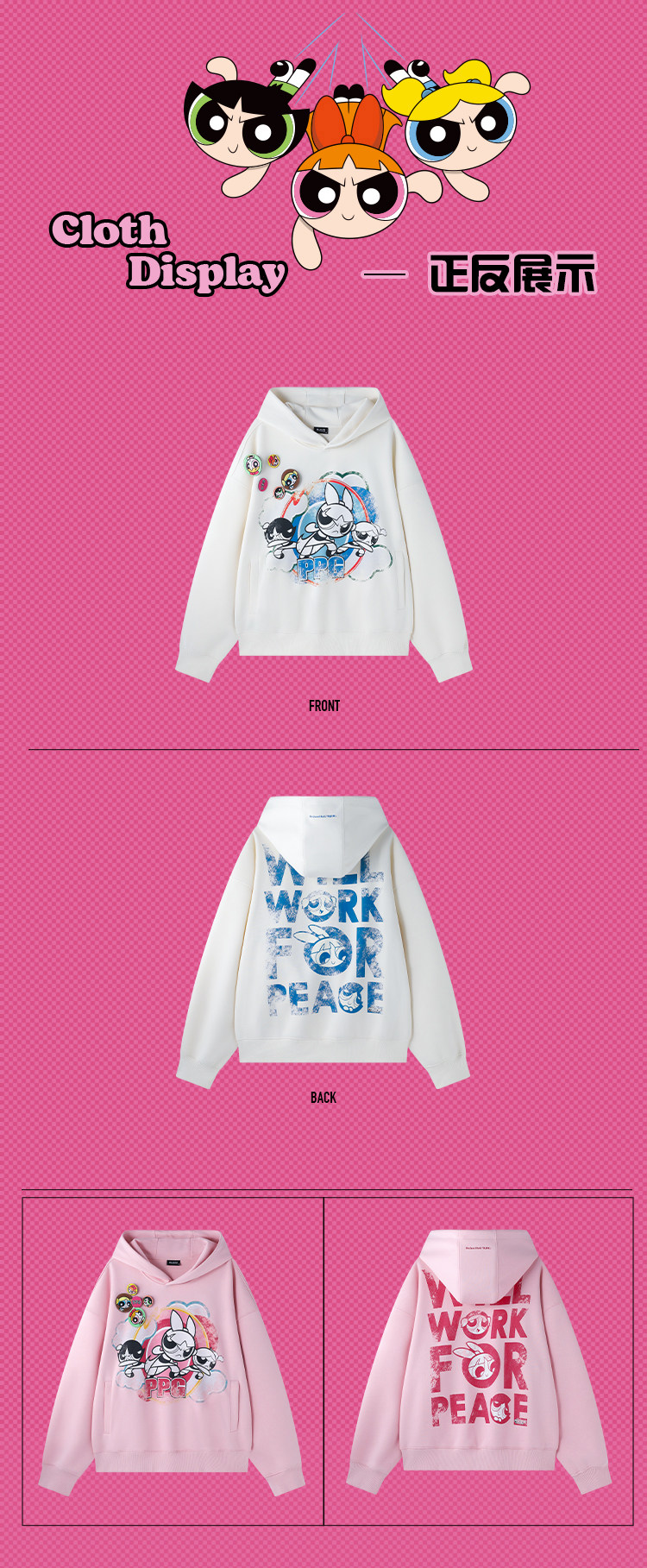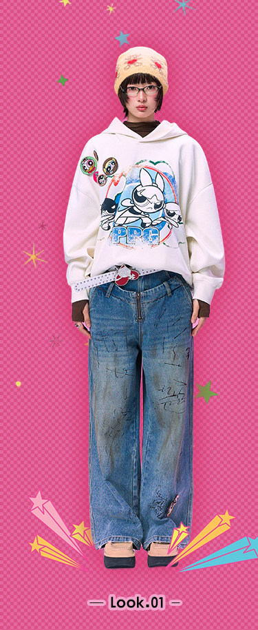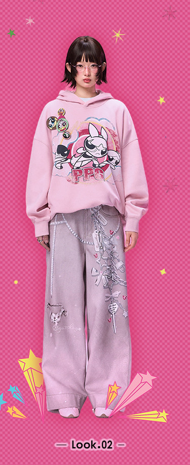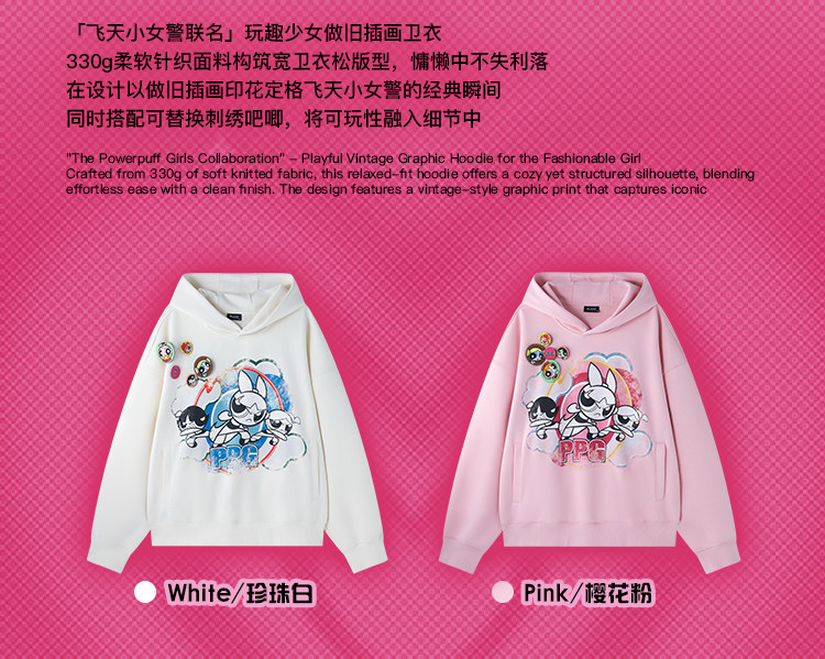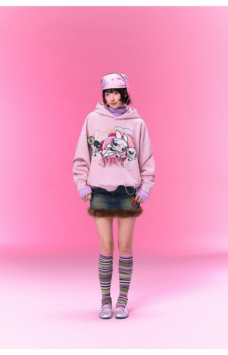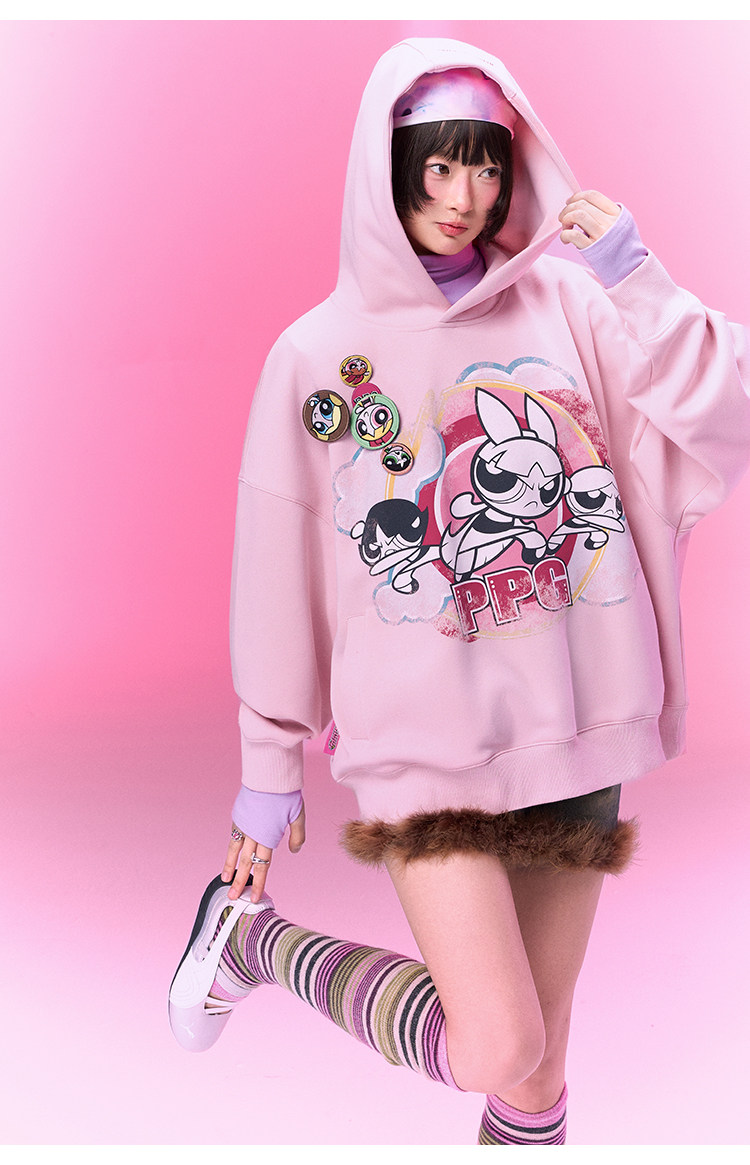 【飞天小女警联名】BJHG不计后果美式卫衣女春季做旧印花连帽上衣
