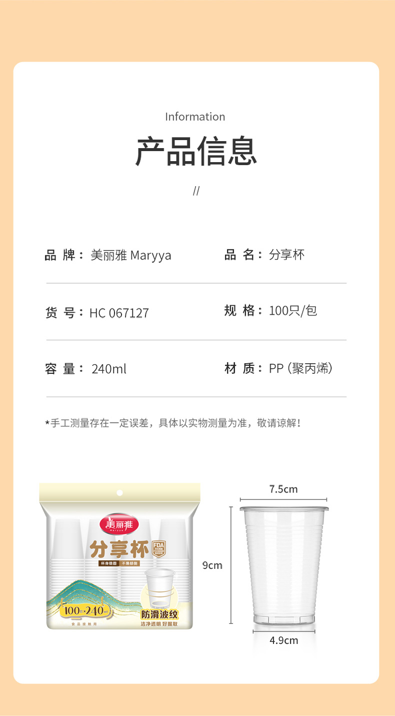 【批发】美丽雅240ML分享杯100只入