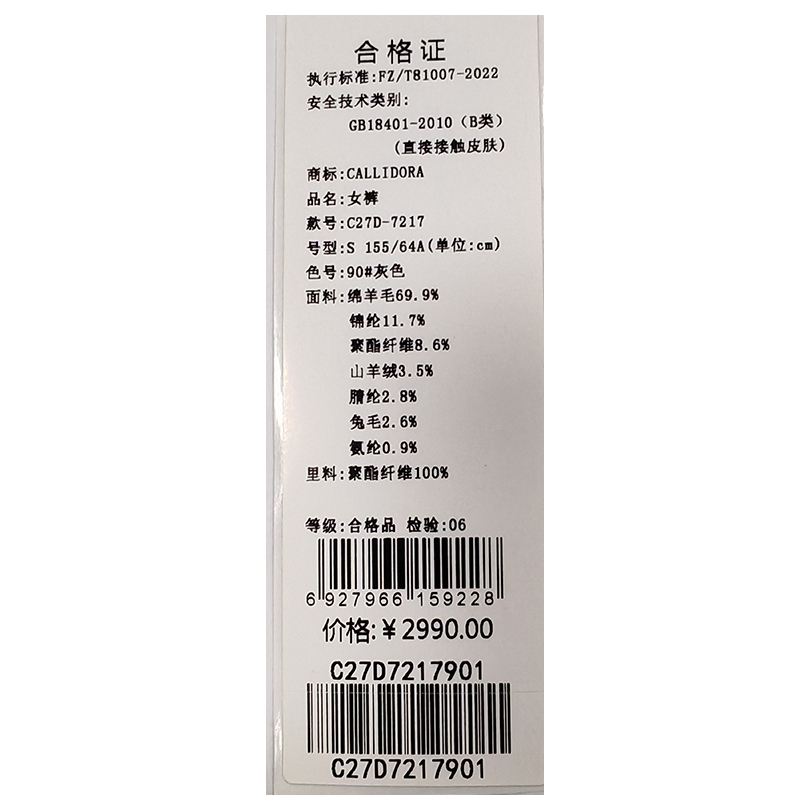 卡莉朵拉裤子C27D7217