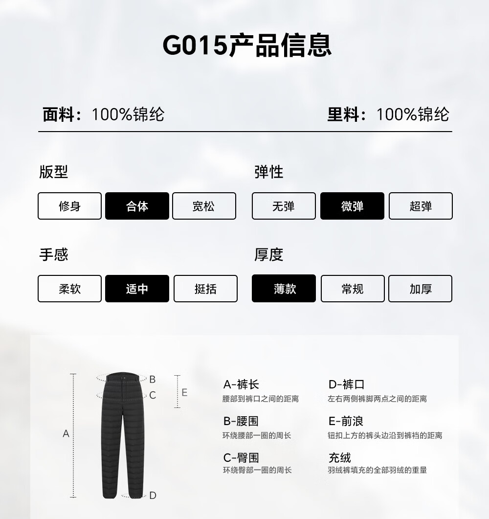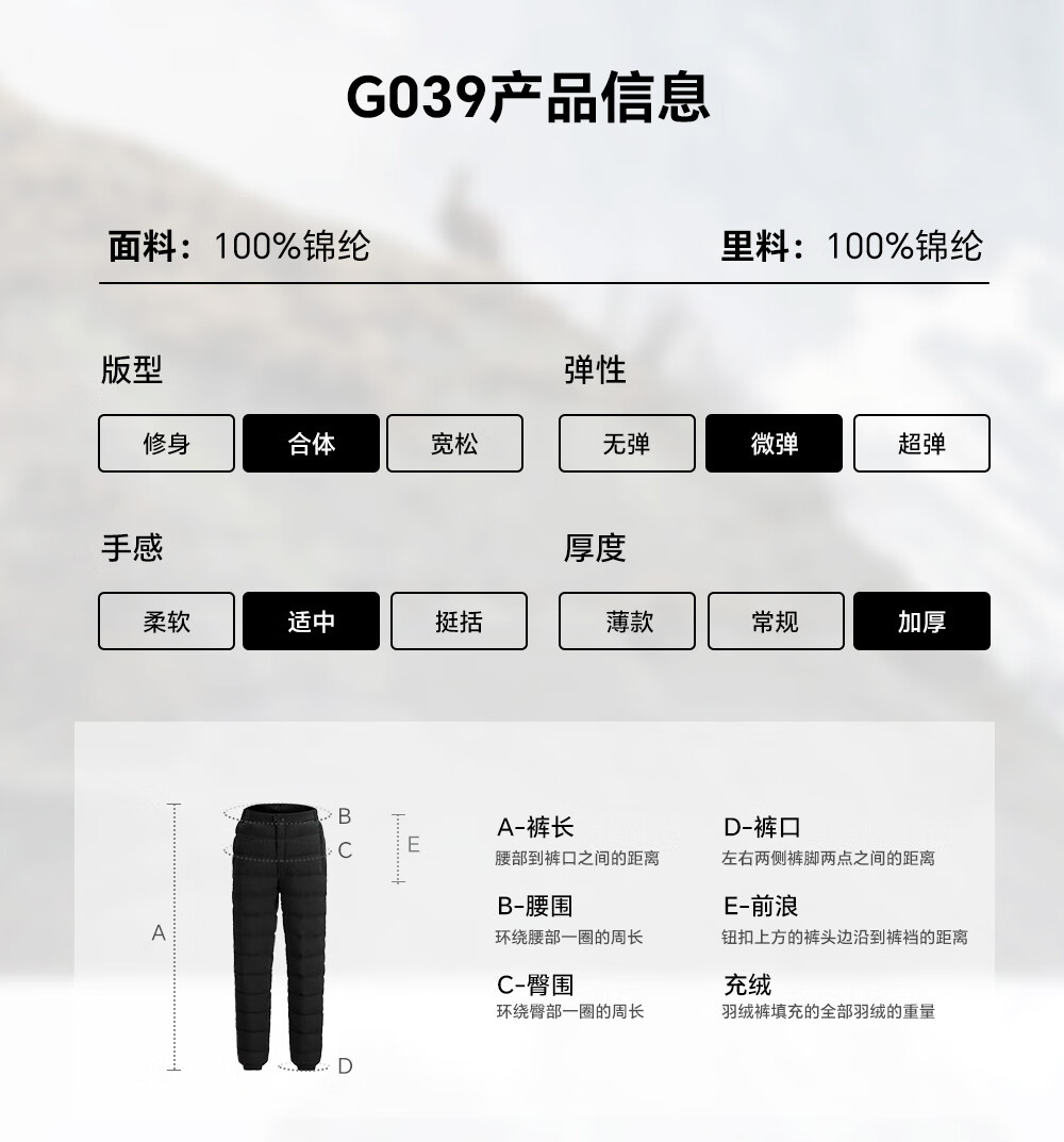 【649元起秒杀】天石鹅铠甲700蓬鹅绒羽绒裤男士内穿女士保暖裤弹力东北严寒G015/039 黑色(基础款)