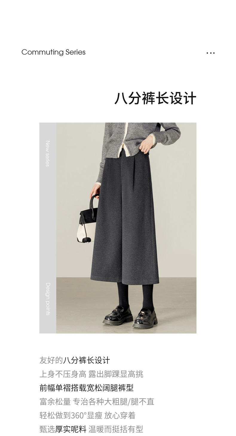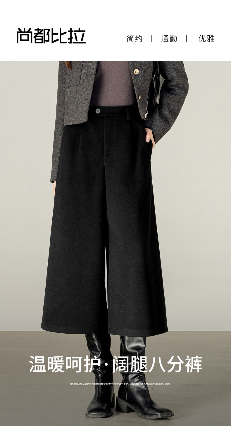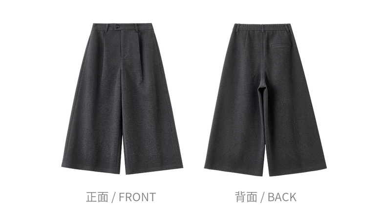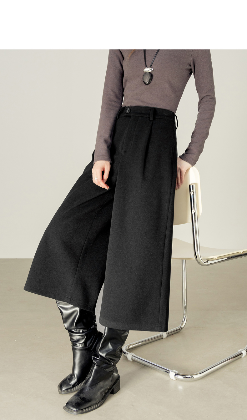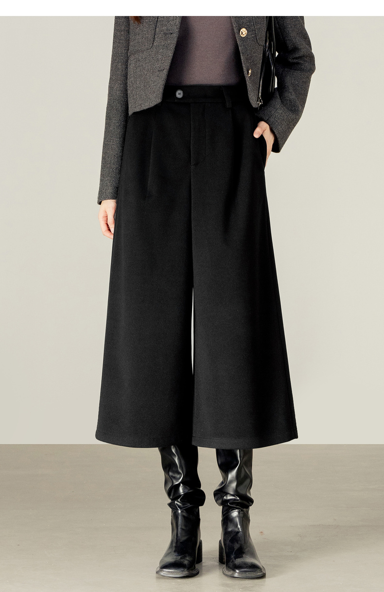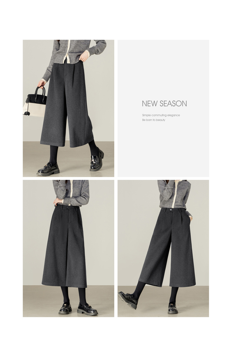 【内购】【厚实保暖】】松紧腰立体压褶宽松遮肉显瘦微弹厚呢阔腿八分裤-153KD2679