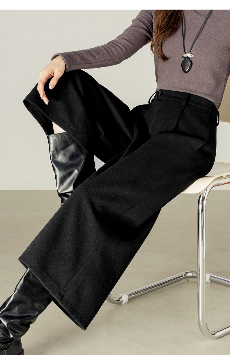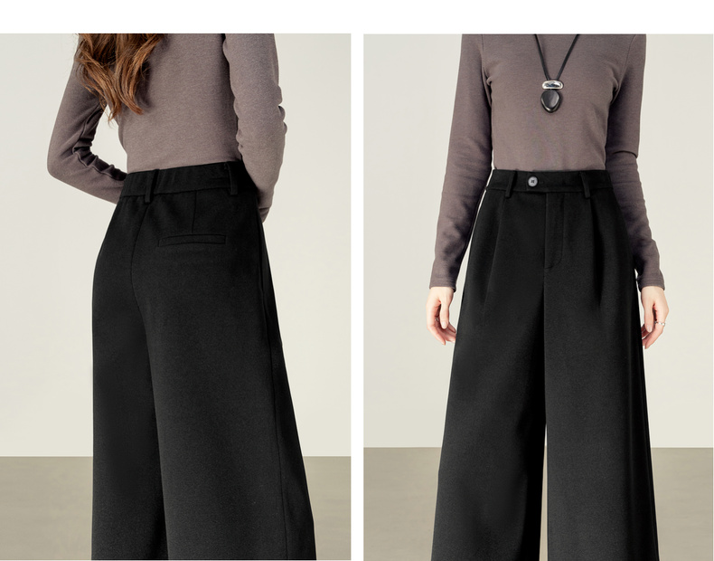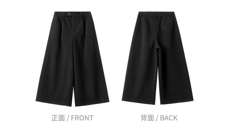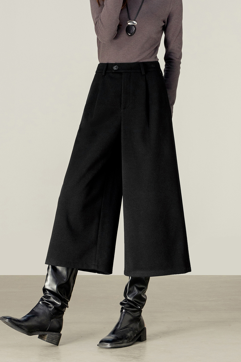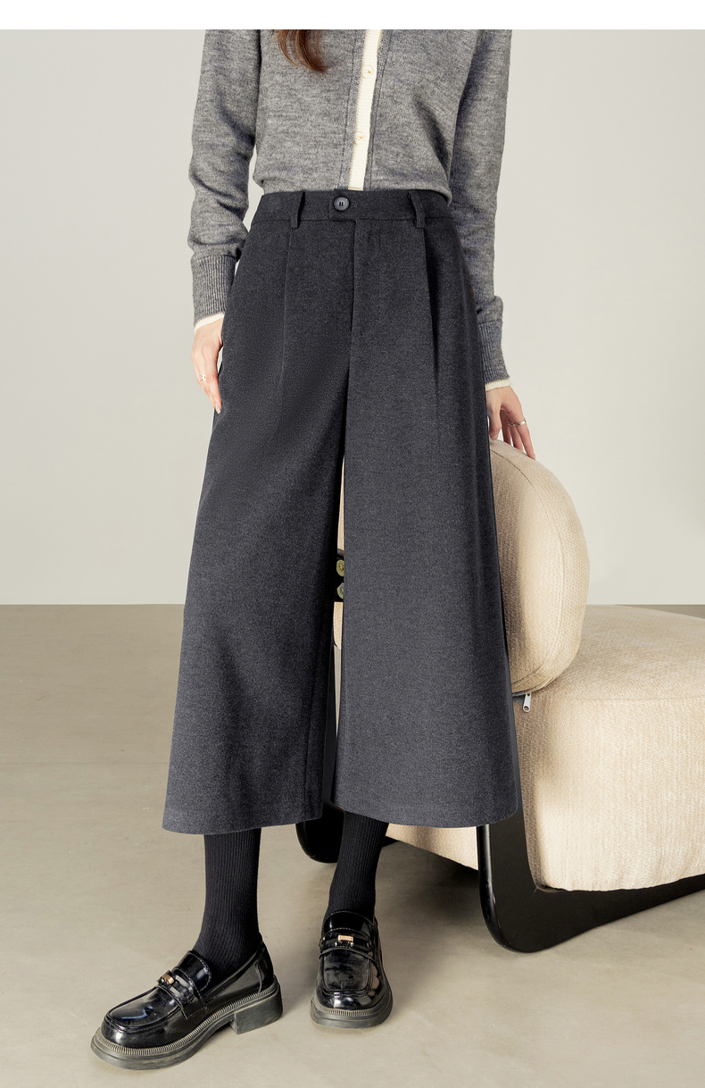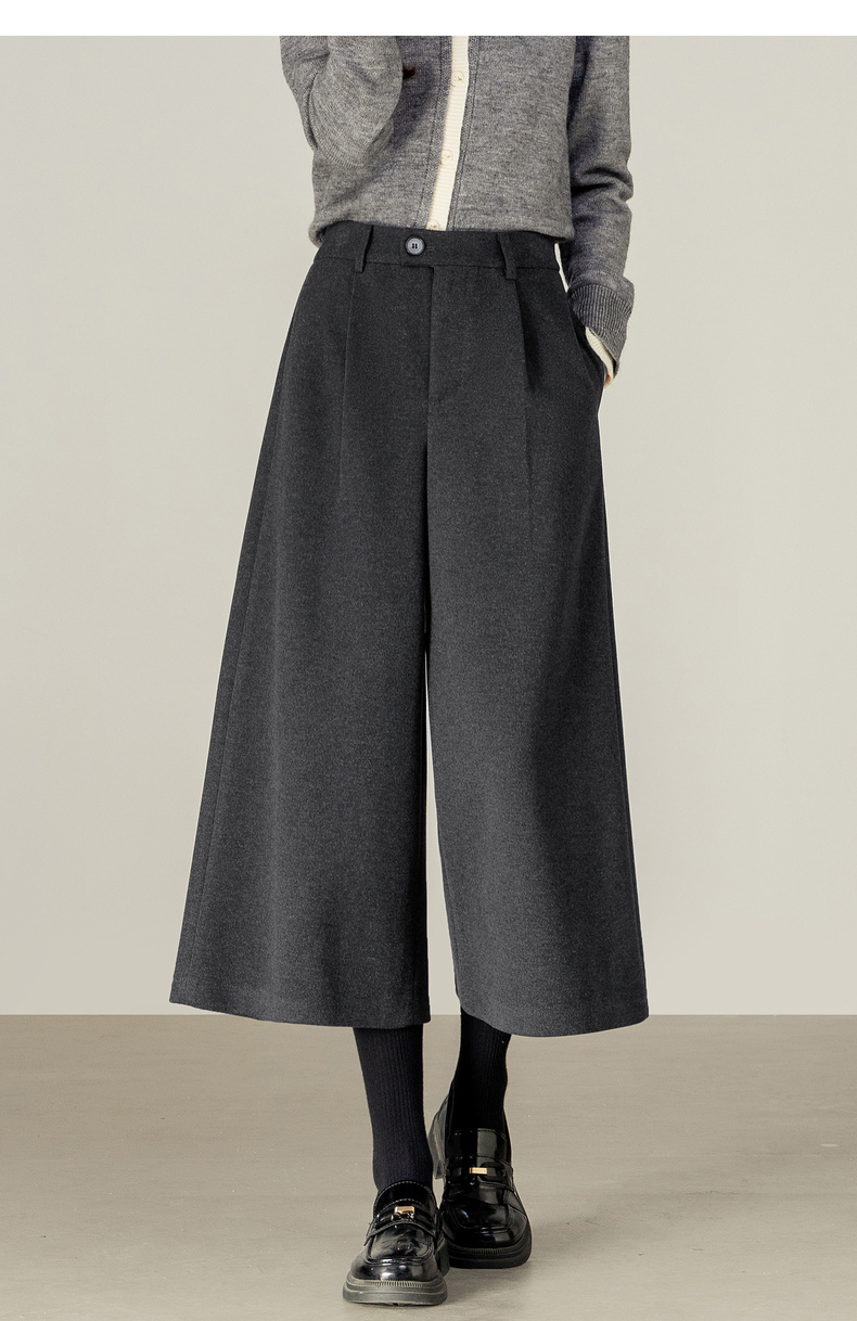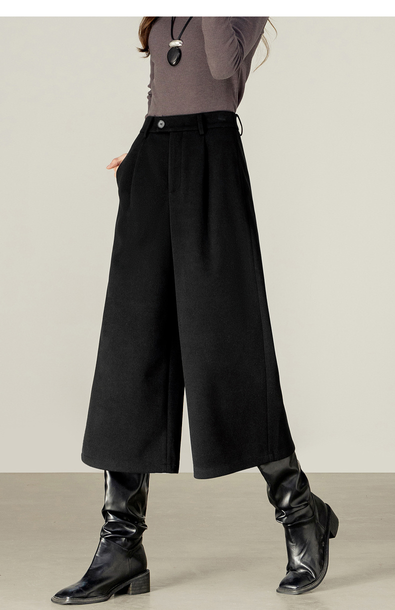 【内购】【厚实保暖】】松紧腰立体压褶宽松遮肉显瘦微弹厚呢阔腿八分裤-153KD2679