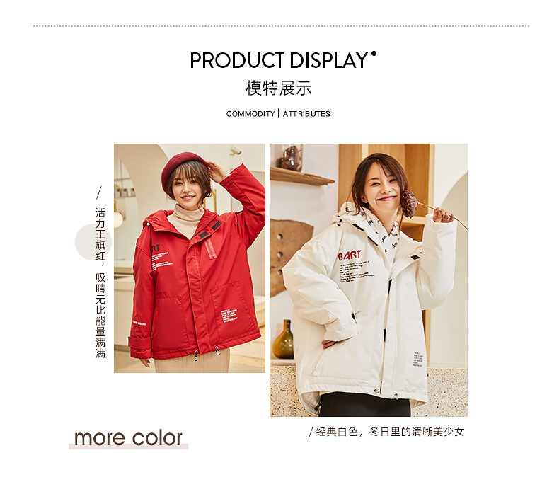 TD19136坦博尔2019新款工装羽绒服短款女韩版宽松学生羽绒服时尚加厚连帽