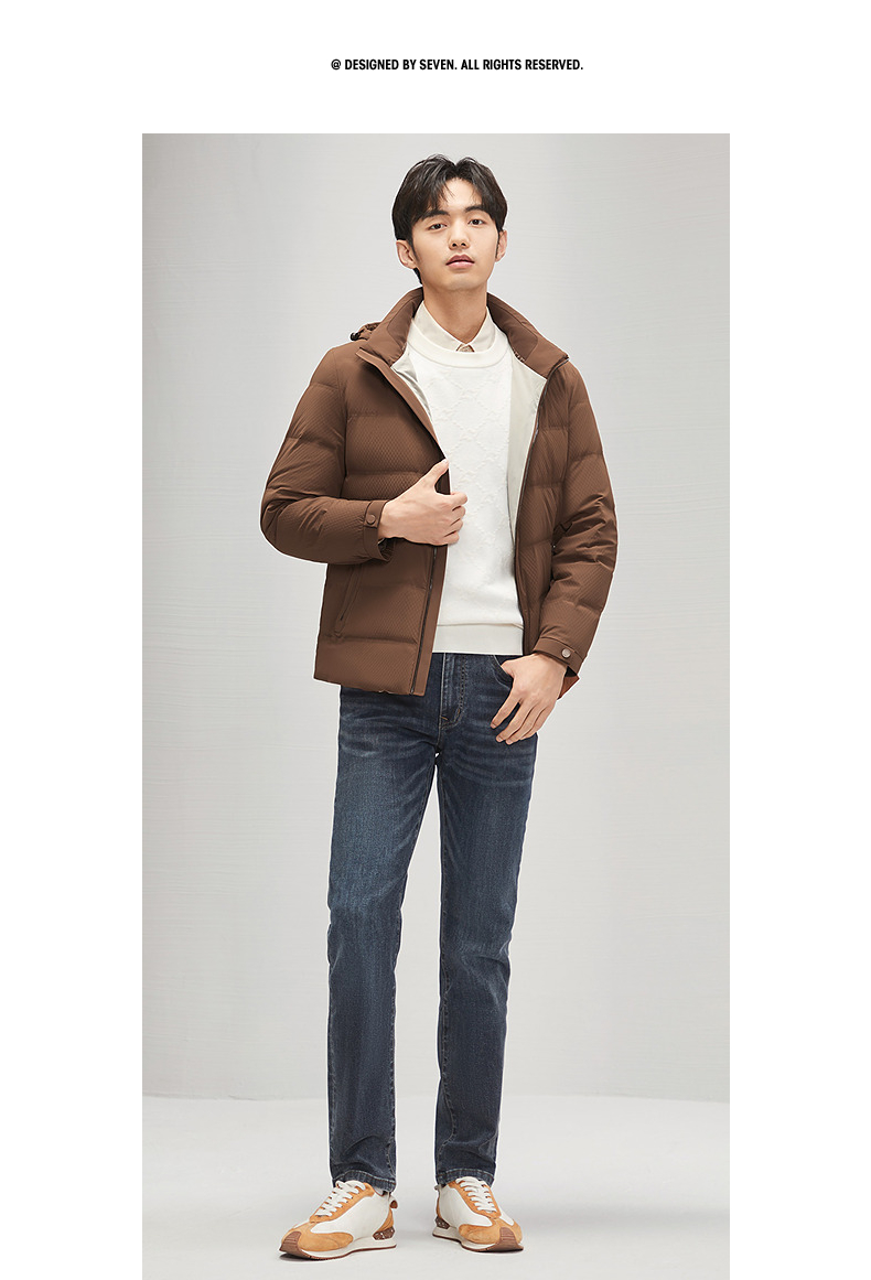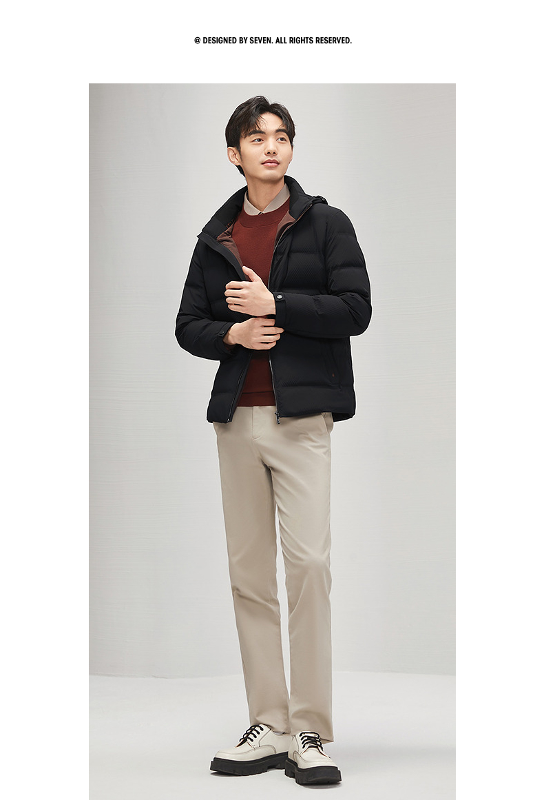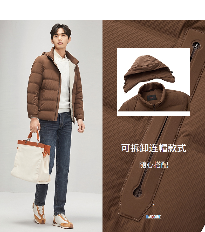 【白鸭绒】柒牌可卸连帽羽绒服男冬季新品时尚休闲舒适保暖厚外套 127E71710
