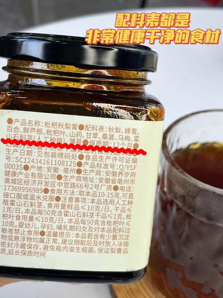 【枇杷秋梨膏】精选 11 种药食同源的食材,不加1滴水和冰糖,文火熬制十几个小时,20斤才能出1瓶的枇杷秋梨膏,没有任何其他添加,可以放心喝哦!