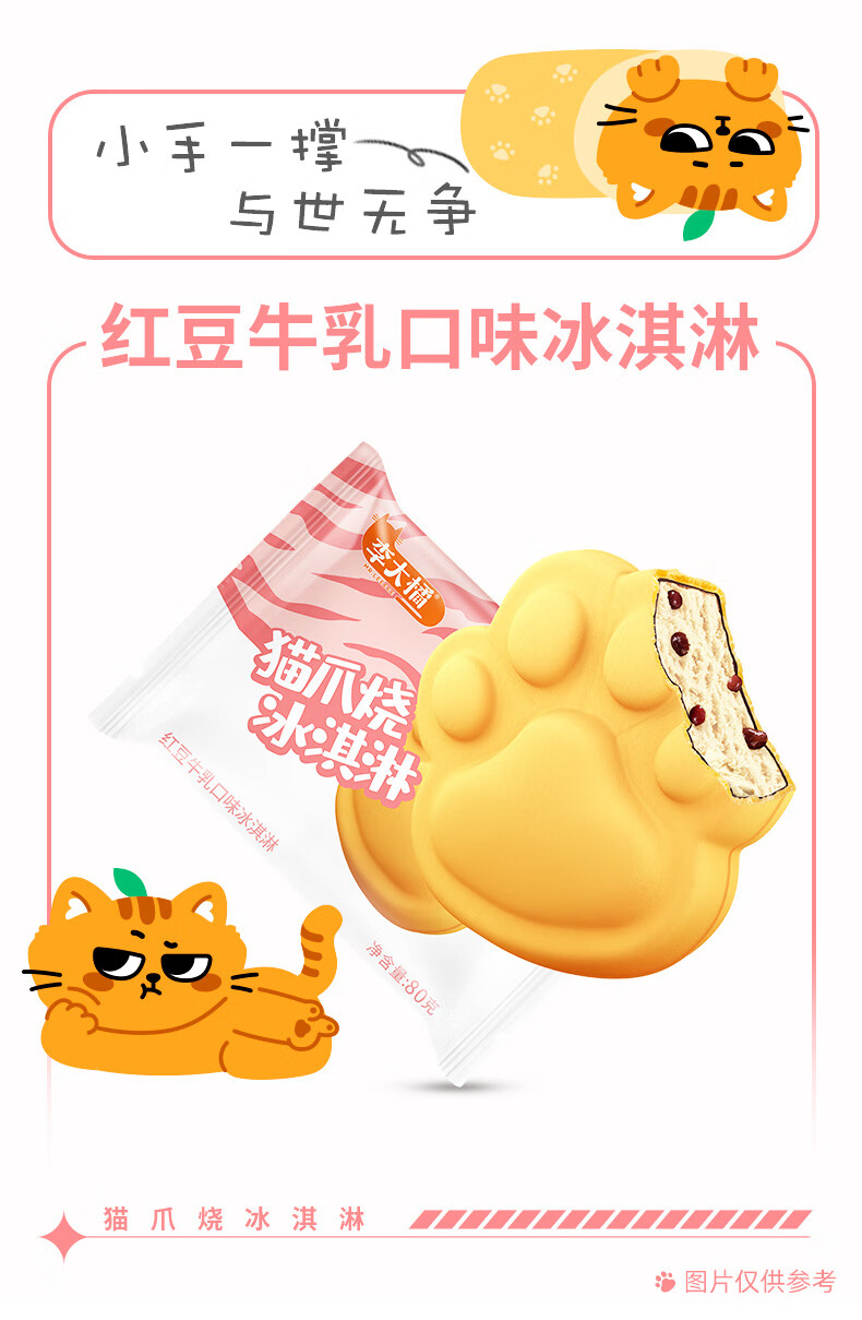 李大橘猫爪烧红豆牛乳冰淇淋80g/130071 绵绵红豆沙馅料搭配软糯红豆粒