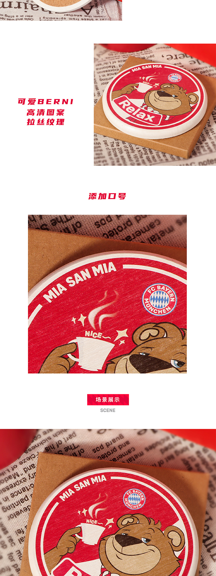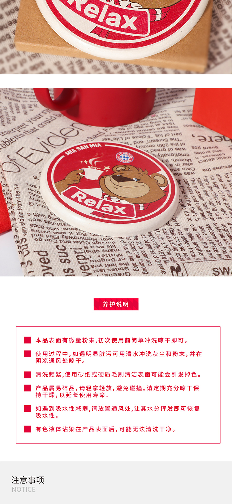【官方正版】拜仁慕尼黑足球俱乐部|BERNI卡通杯垫可爱便携正品周边