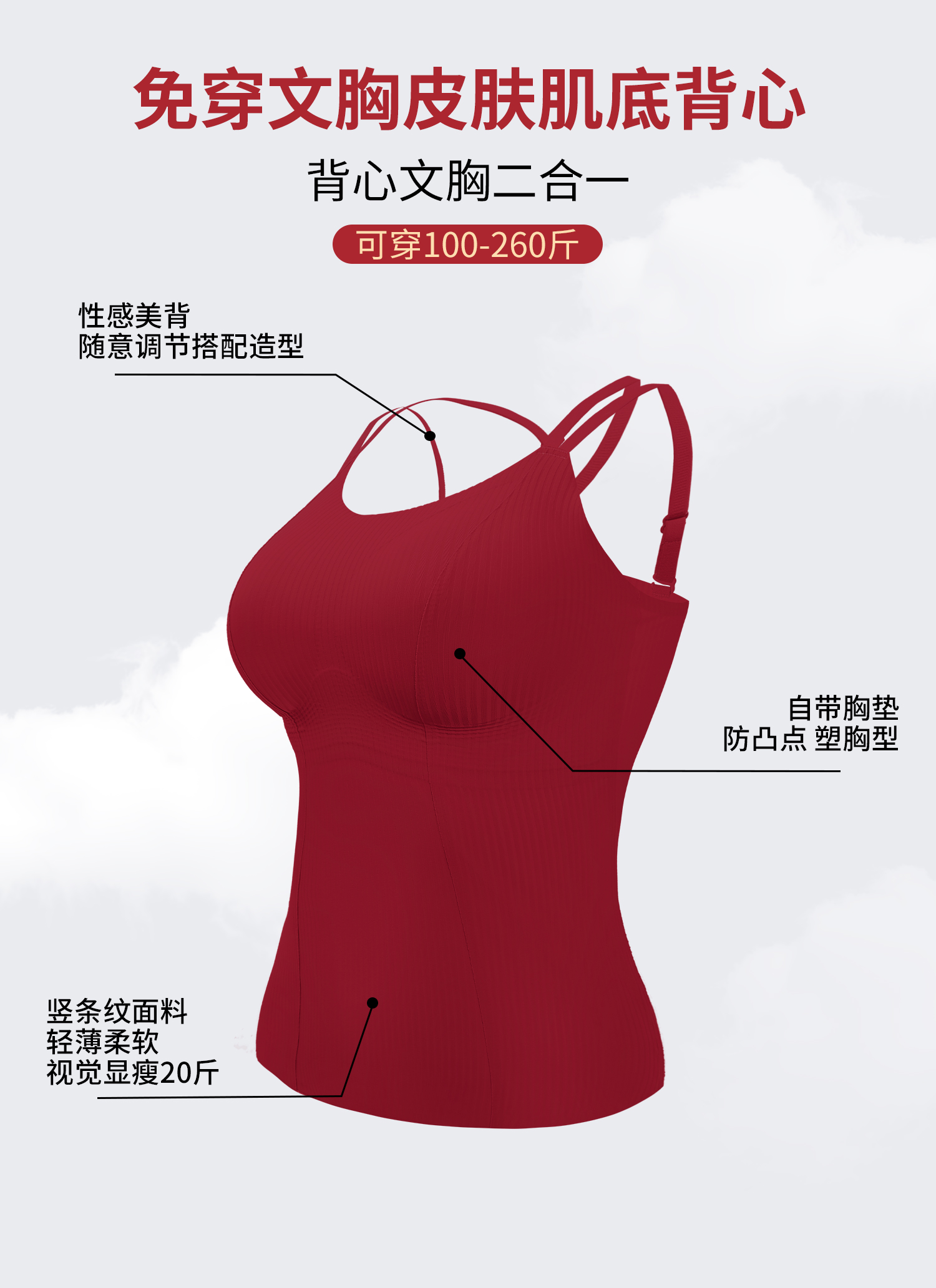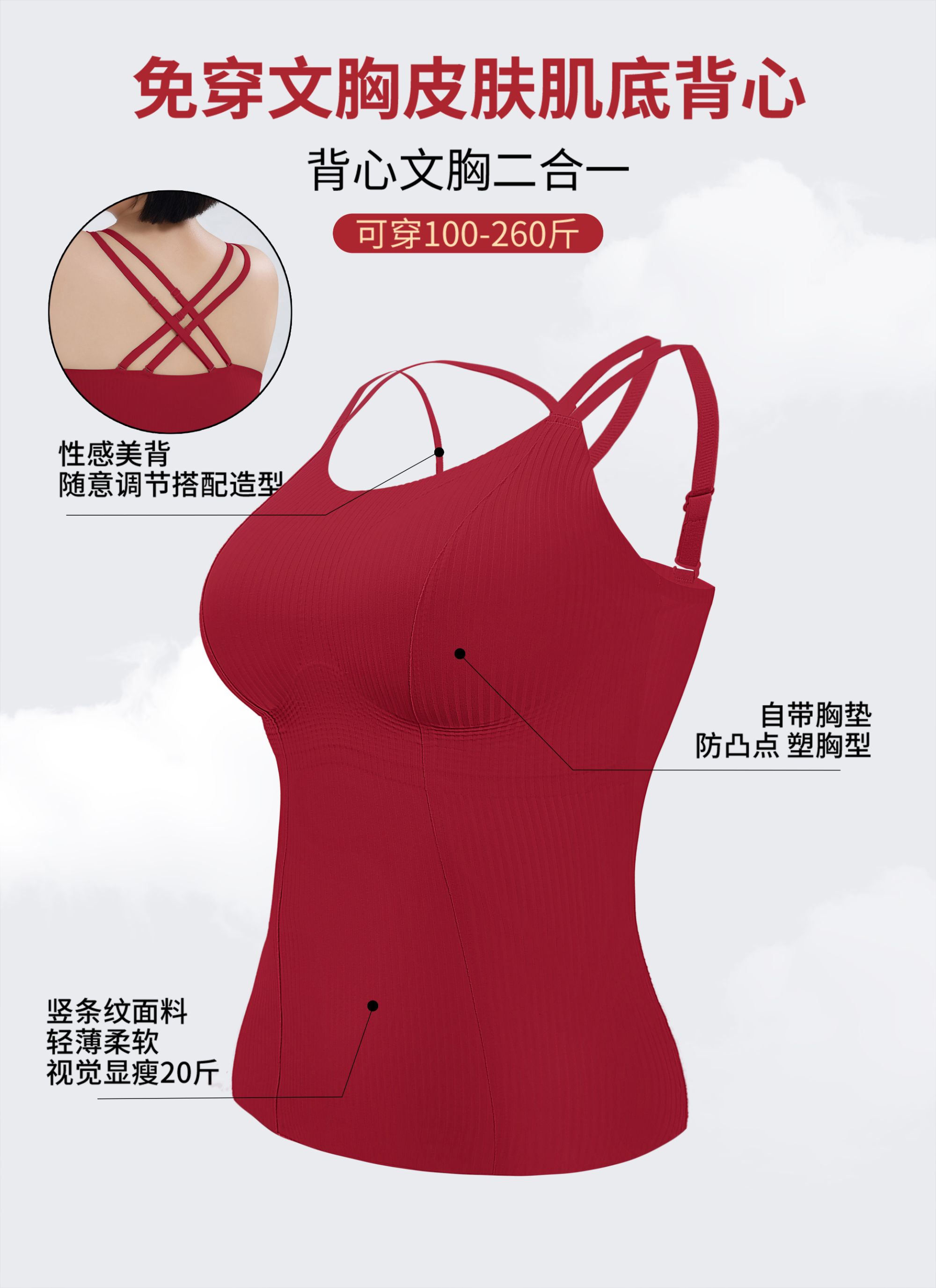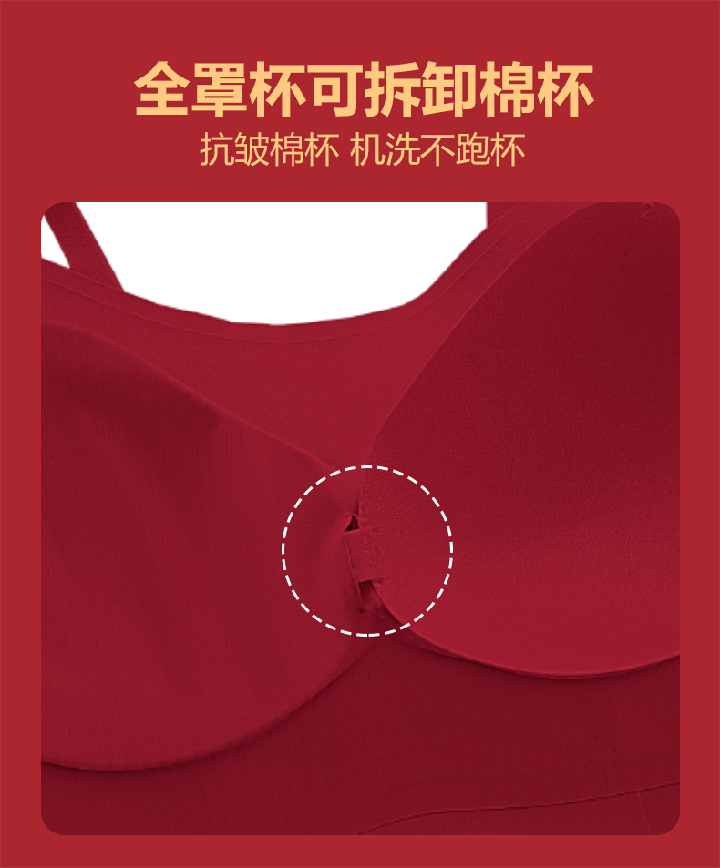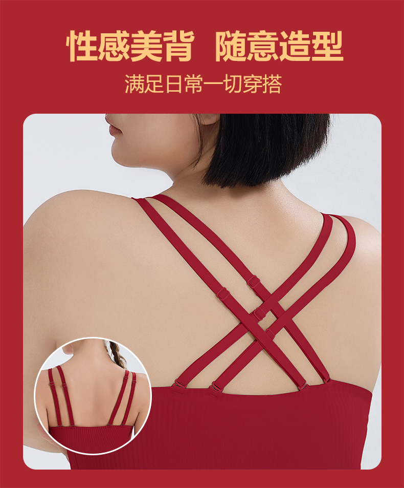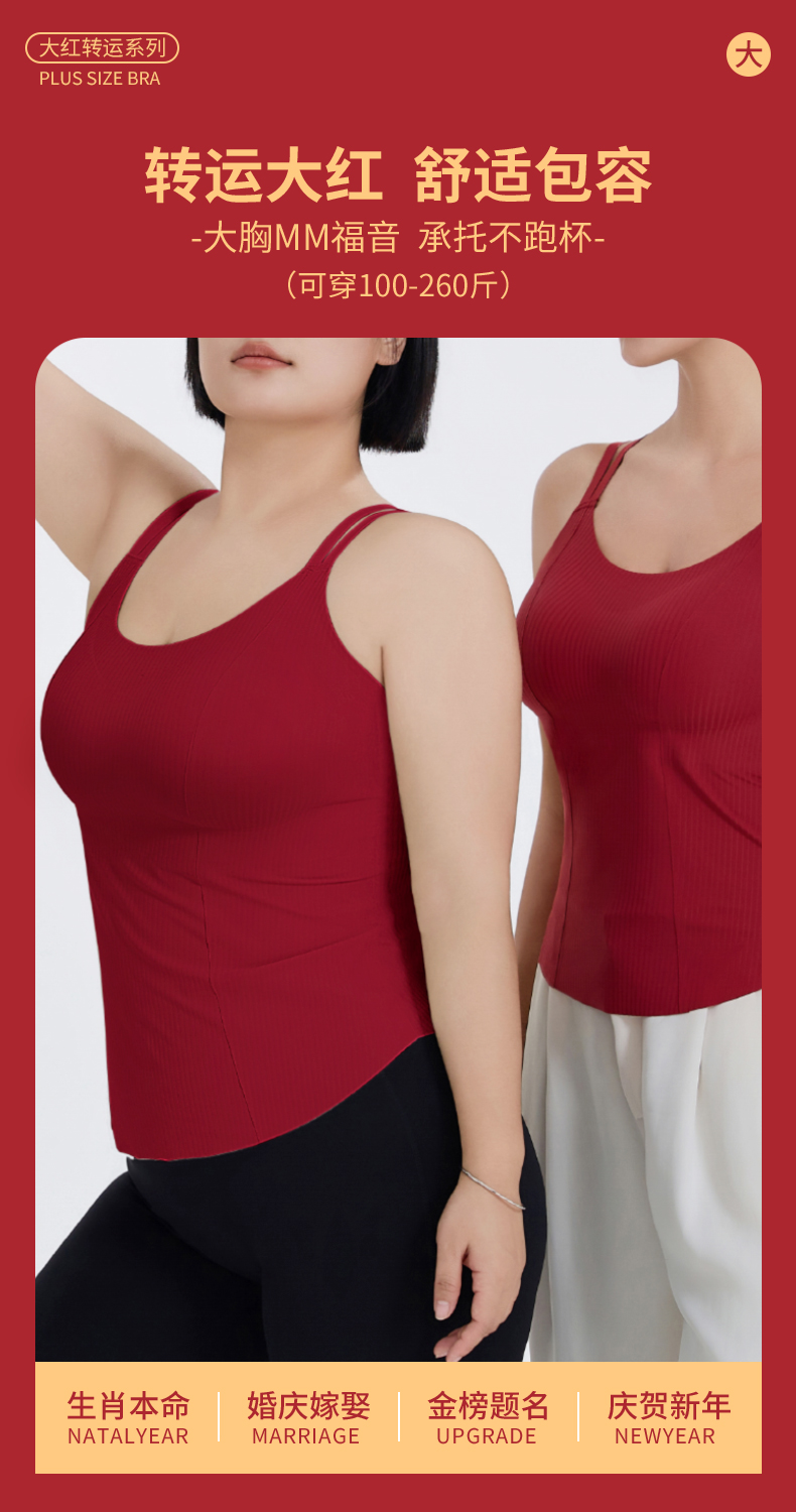 转运红【免穿文胸皮肤肌底背心】背心文胸二合一 大码本命年红色背心女带胸垫免穿文胸性感内搭打底内衣女士W2431#