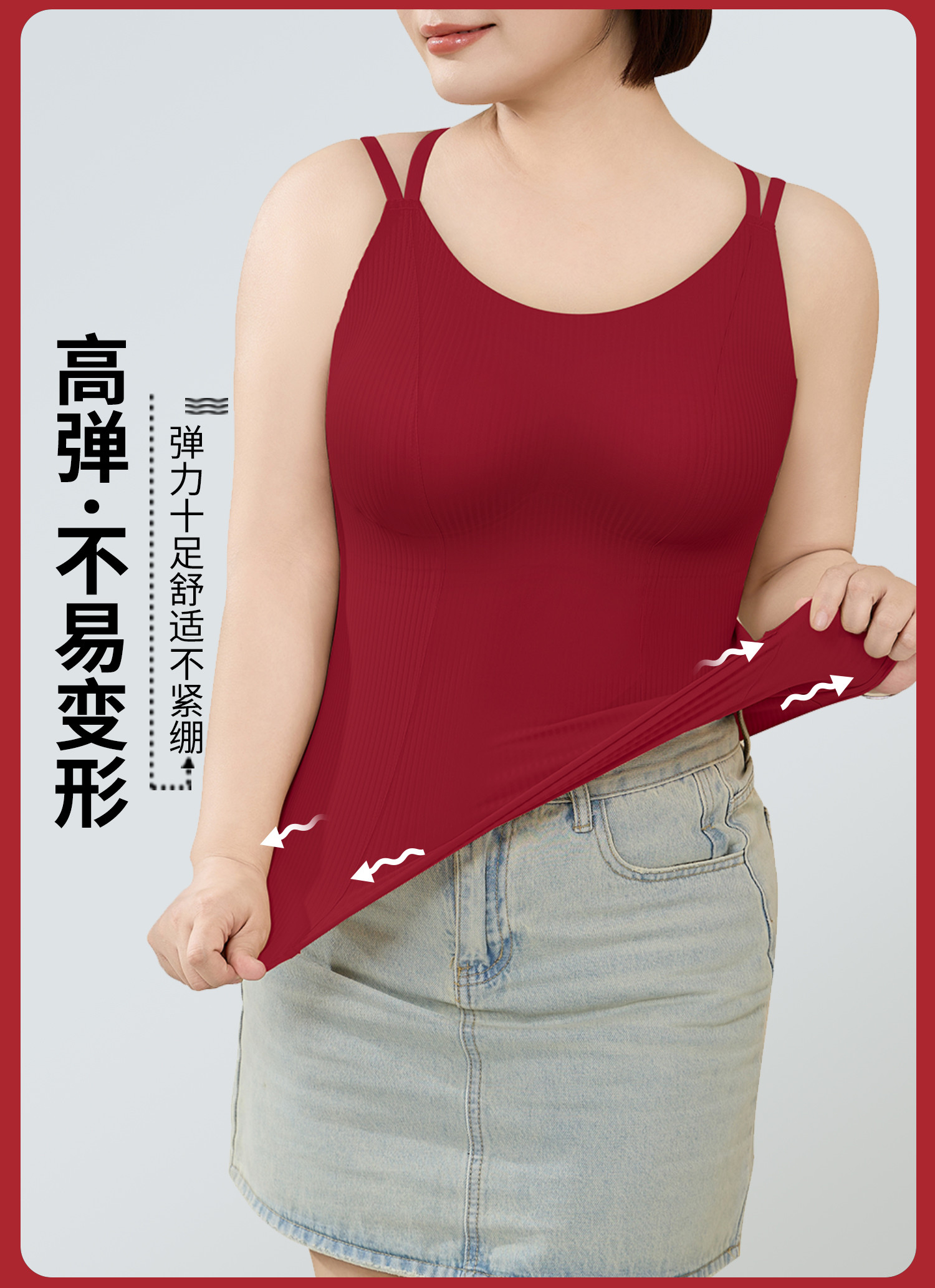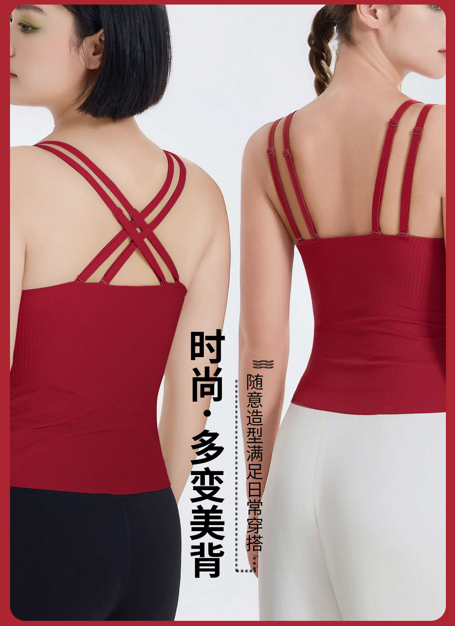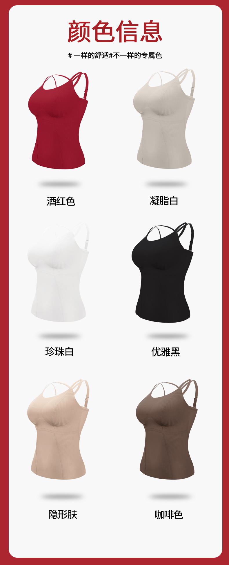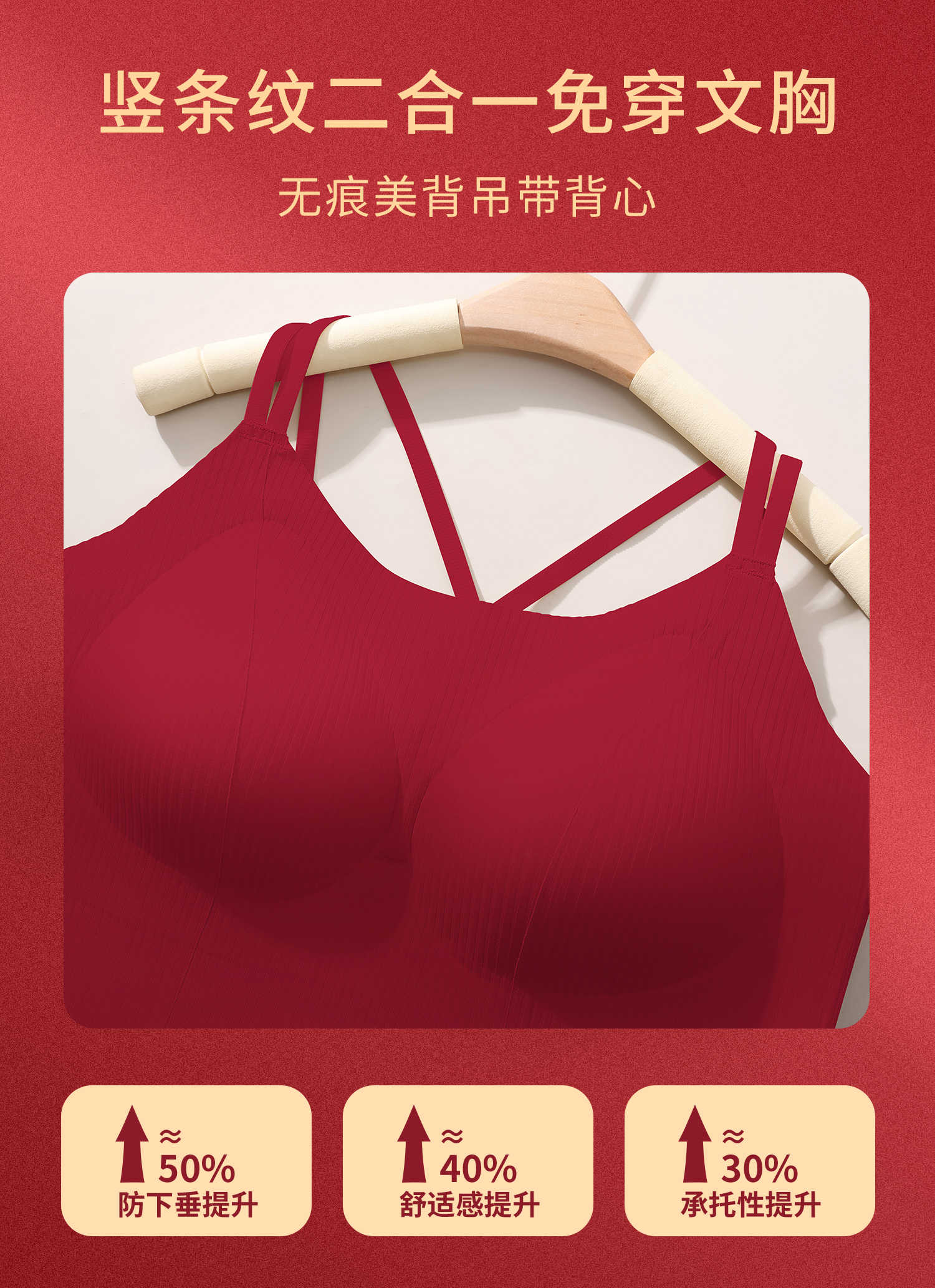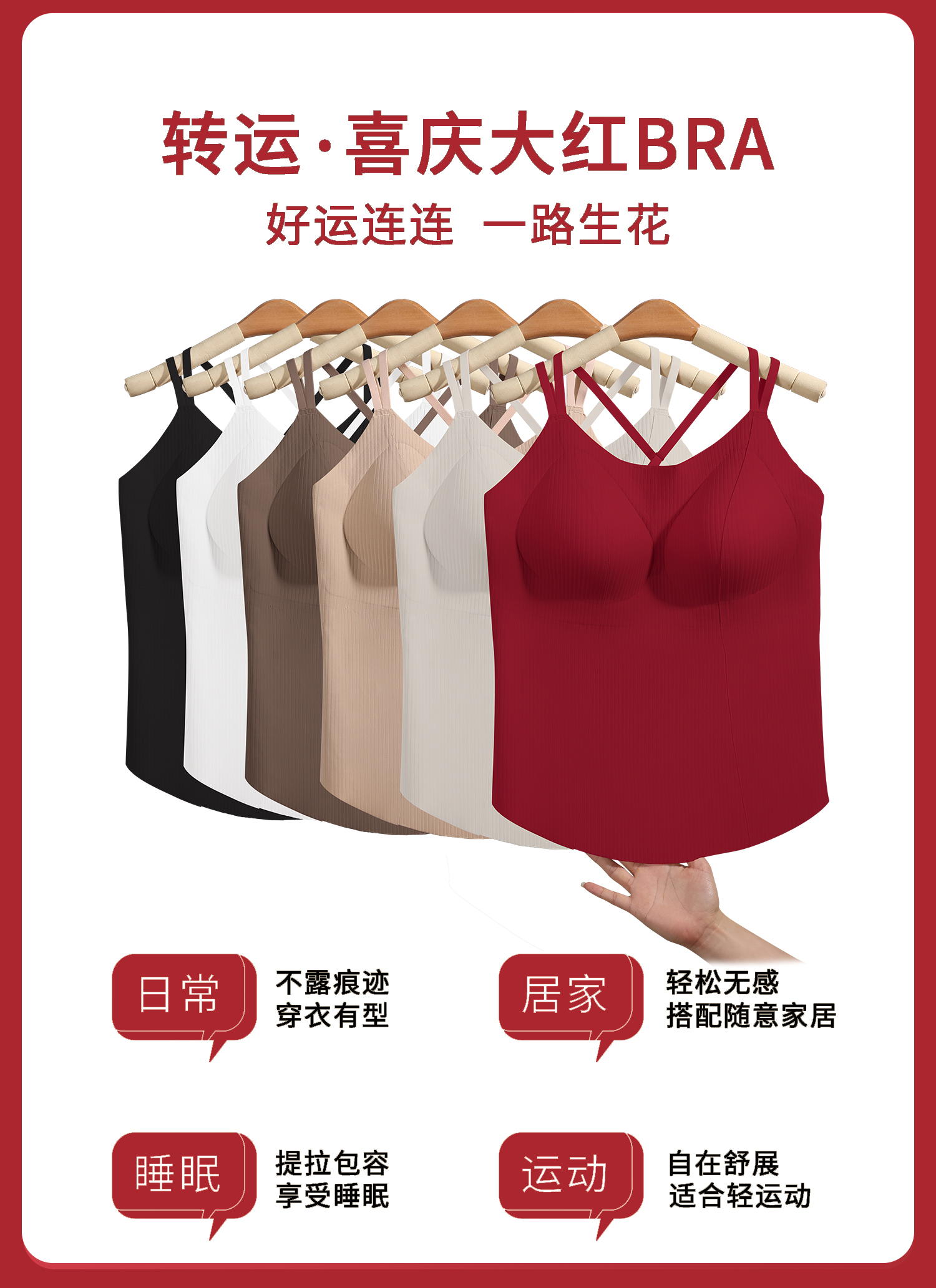 转运红【免穿文胸皮肤肌底背心】背心文胸二合一 大码本命年红色背心女带胸垫免穿文胸性感内搭打底内衣女士W2431#