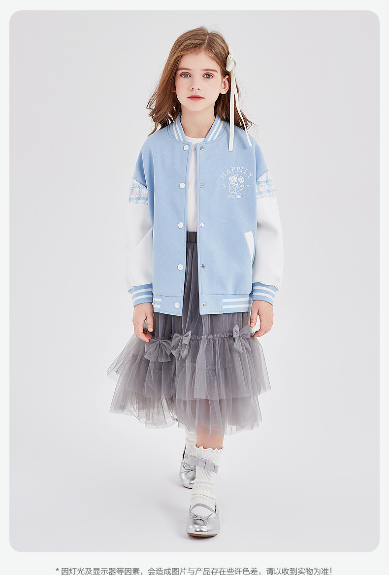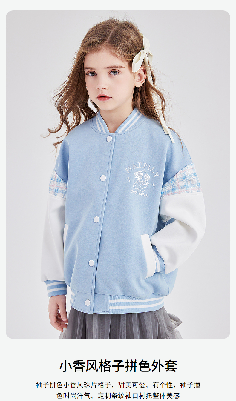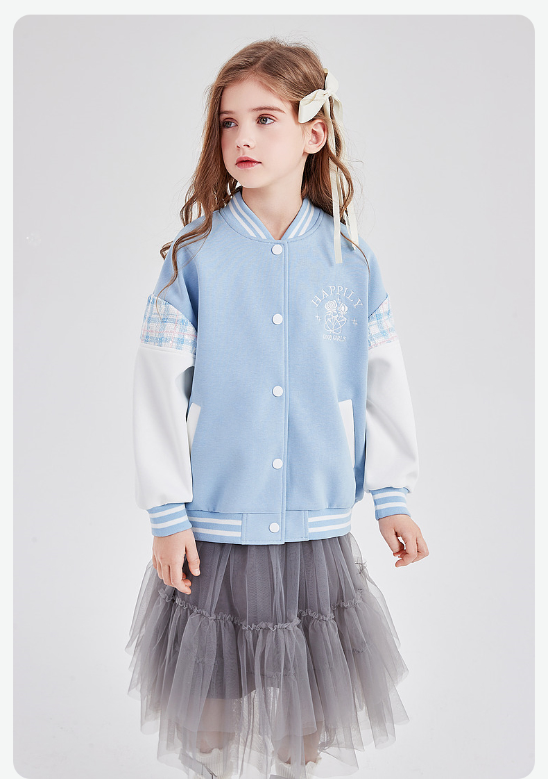 笛莎Deesha 童装女童外套2026春新款撞色拼接空气层棒球服外套