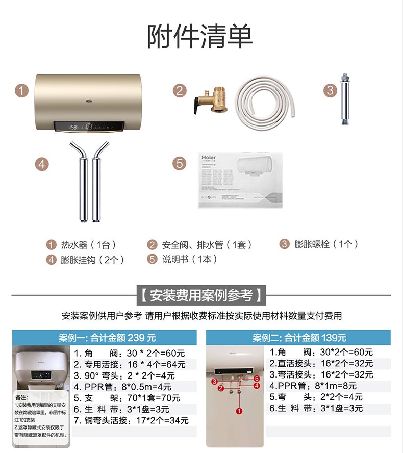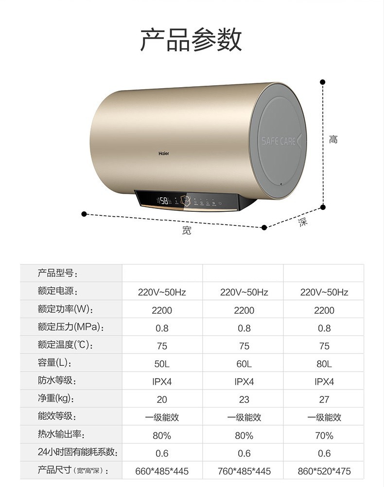 【性价比优选】海尔60升80升 2200W速热电热水器 健康横式电热水器ES80H-GD3(U1),ES60H-GD3(U1)