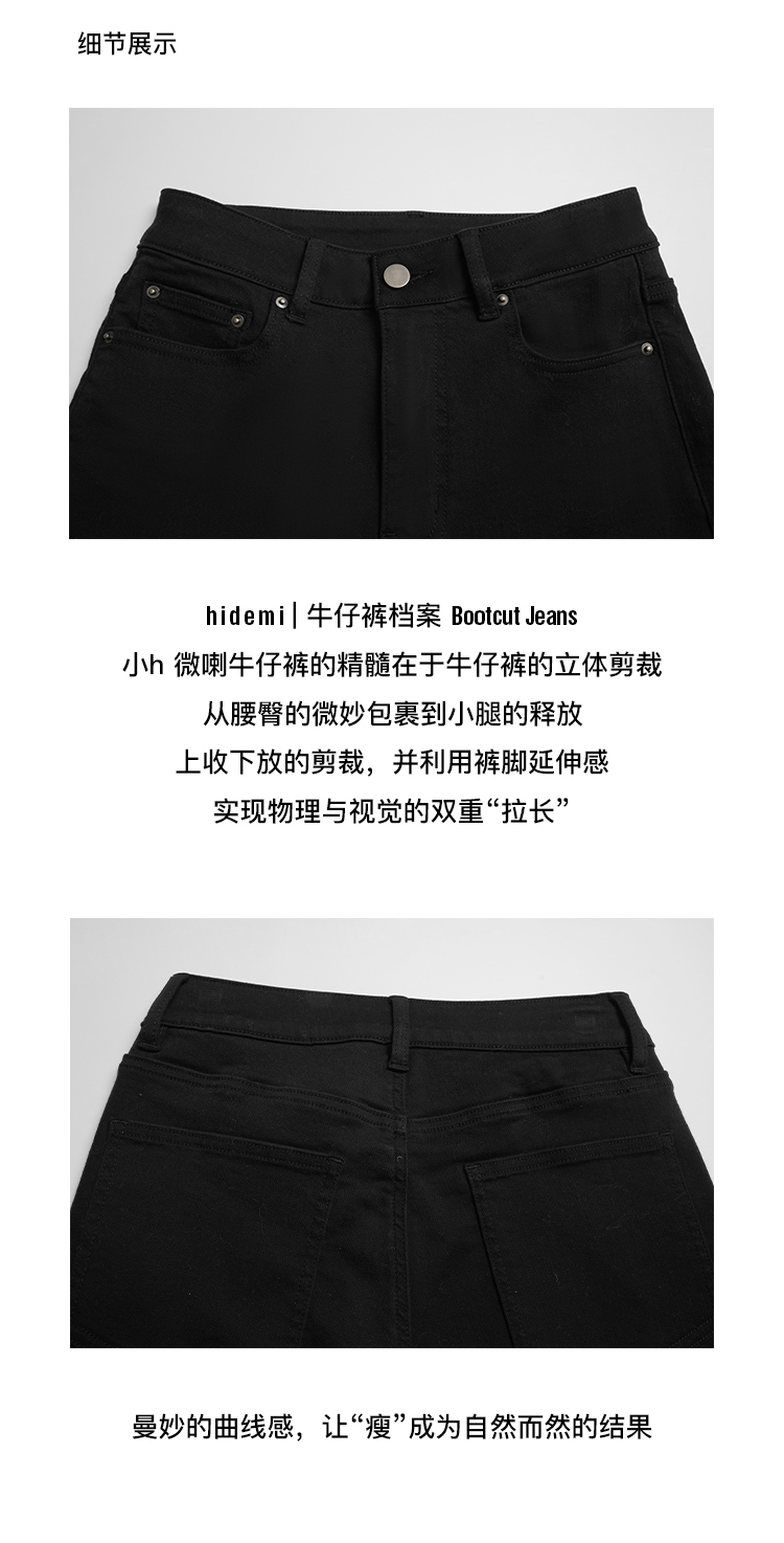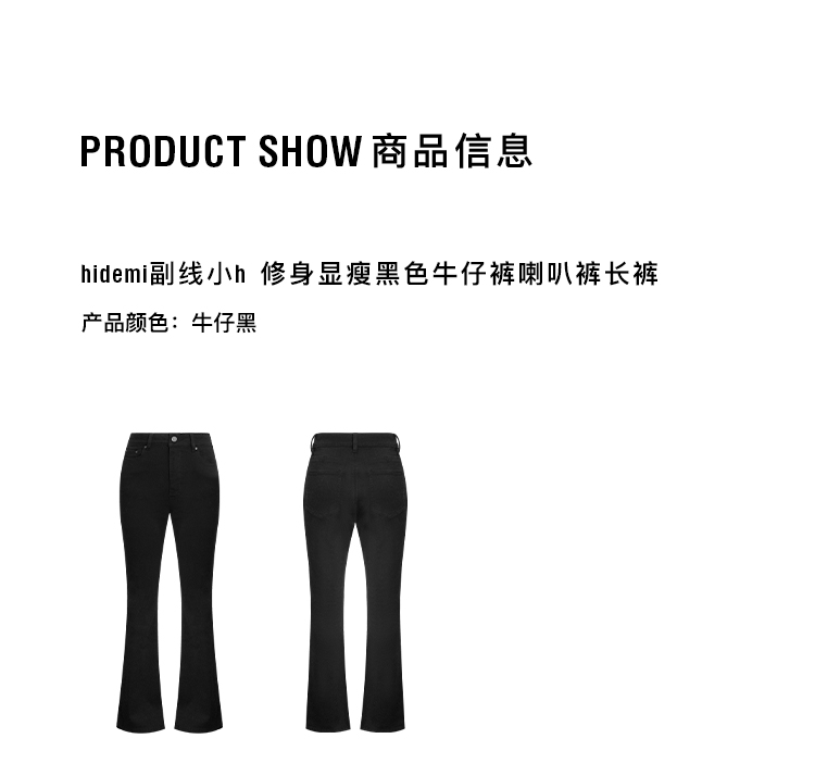 hidemi副线小h 修身显瘦黑色牛仔裤喇叭裤长裤