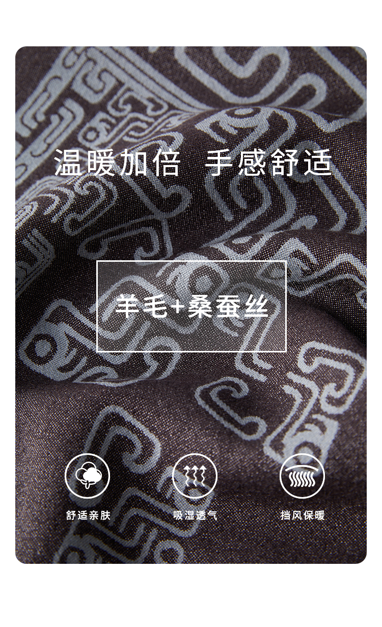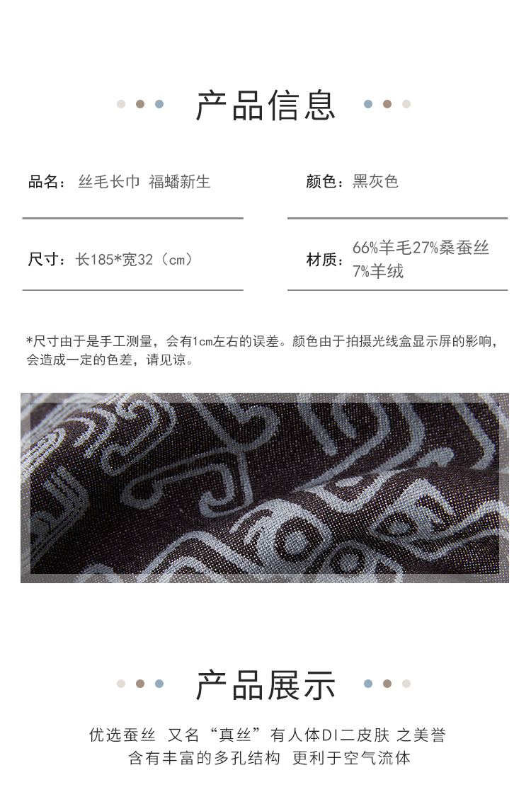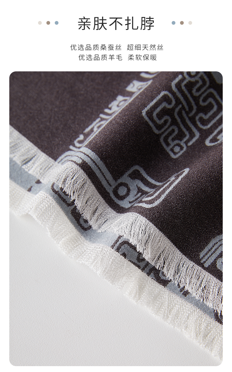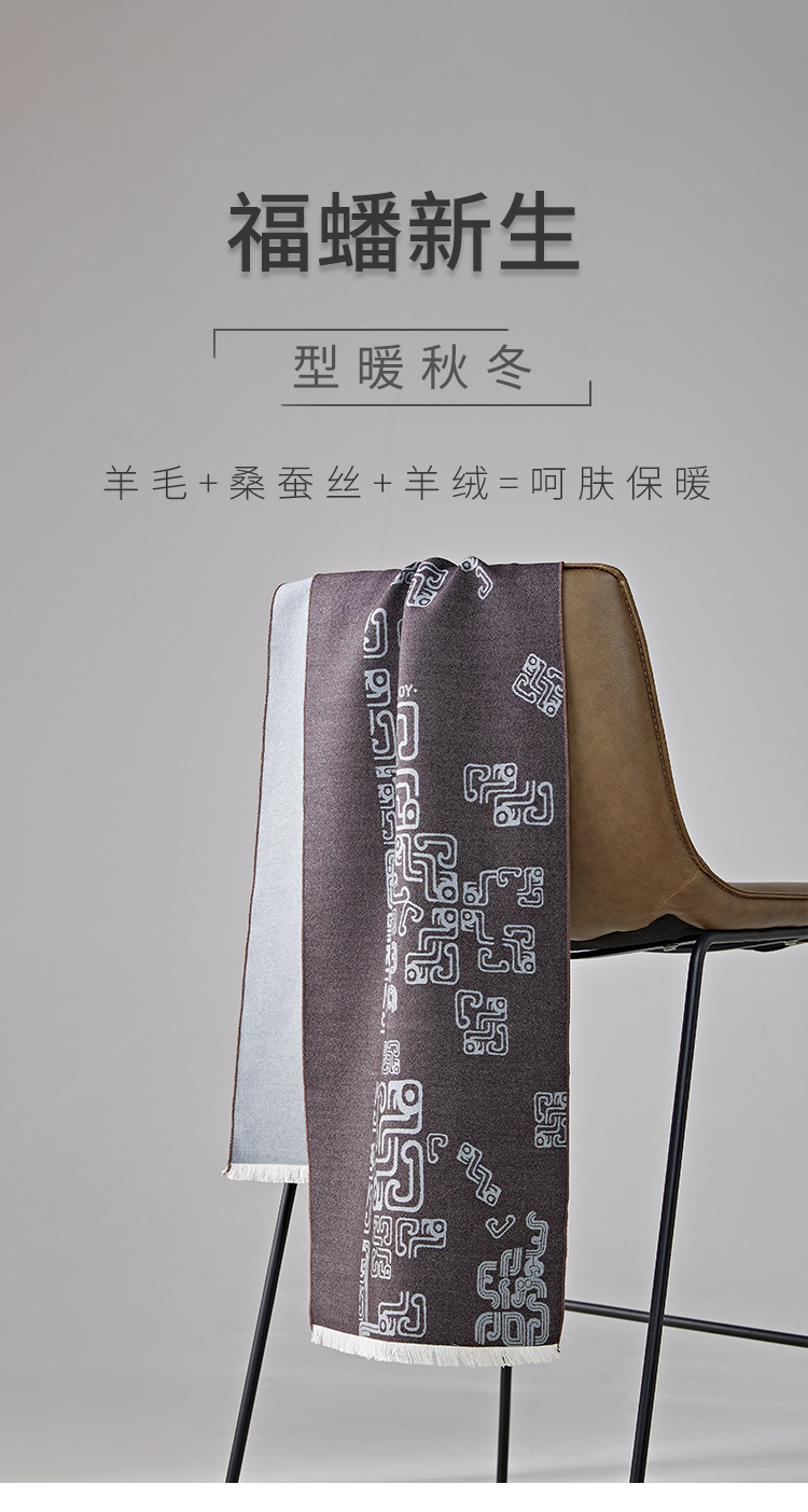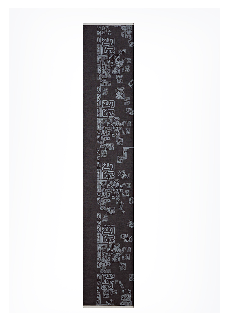 SAINTJOY/上久楷 丝毛长巾 福蟠新生 黑灰色 CJS24003