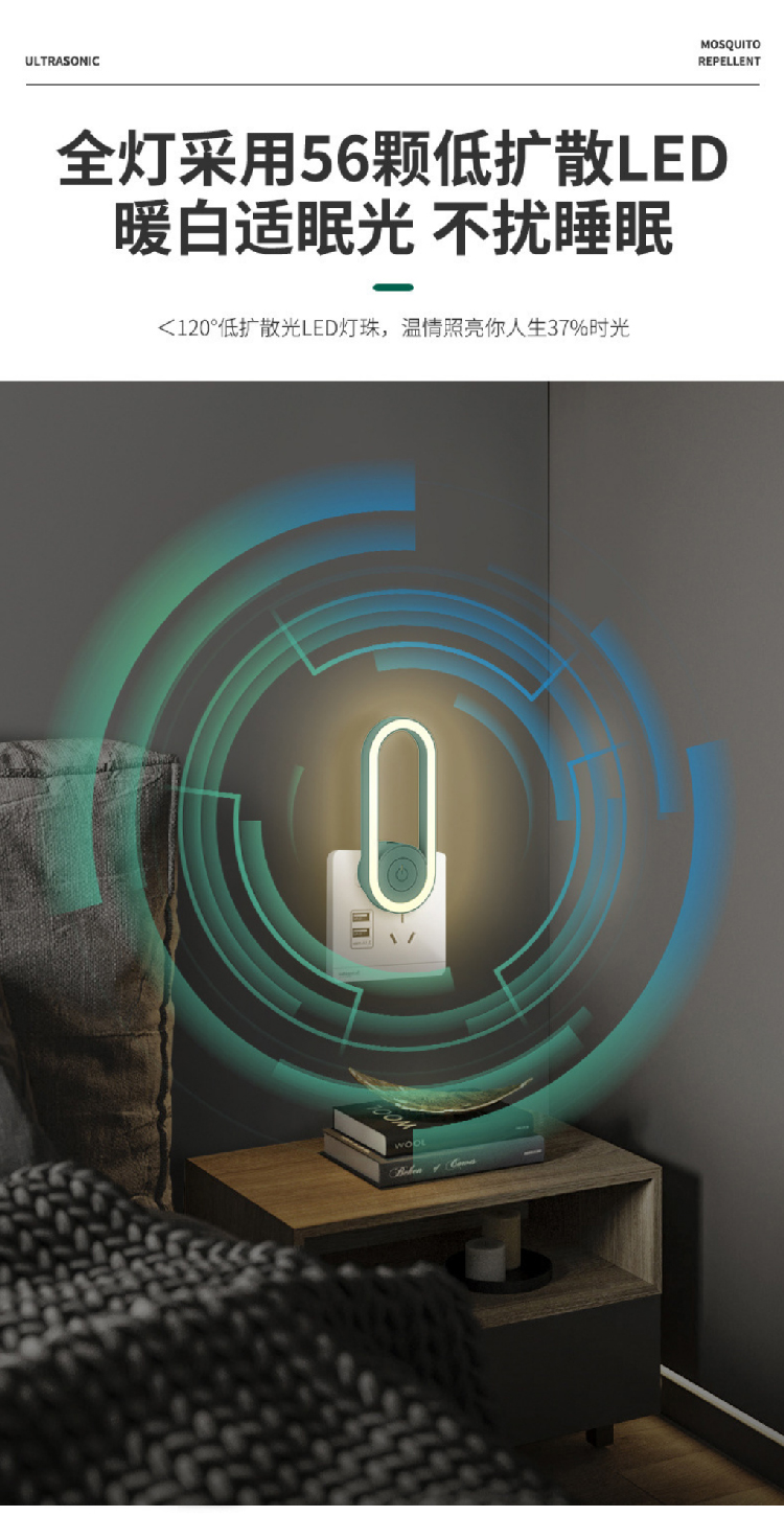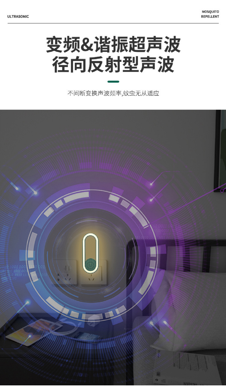 【光感超声波驱蚊器】简约超声波驱蚊器小夜灯 变频感光自动开启超声波驱虫器除螨器