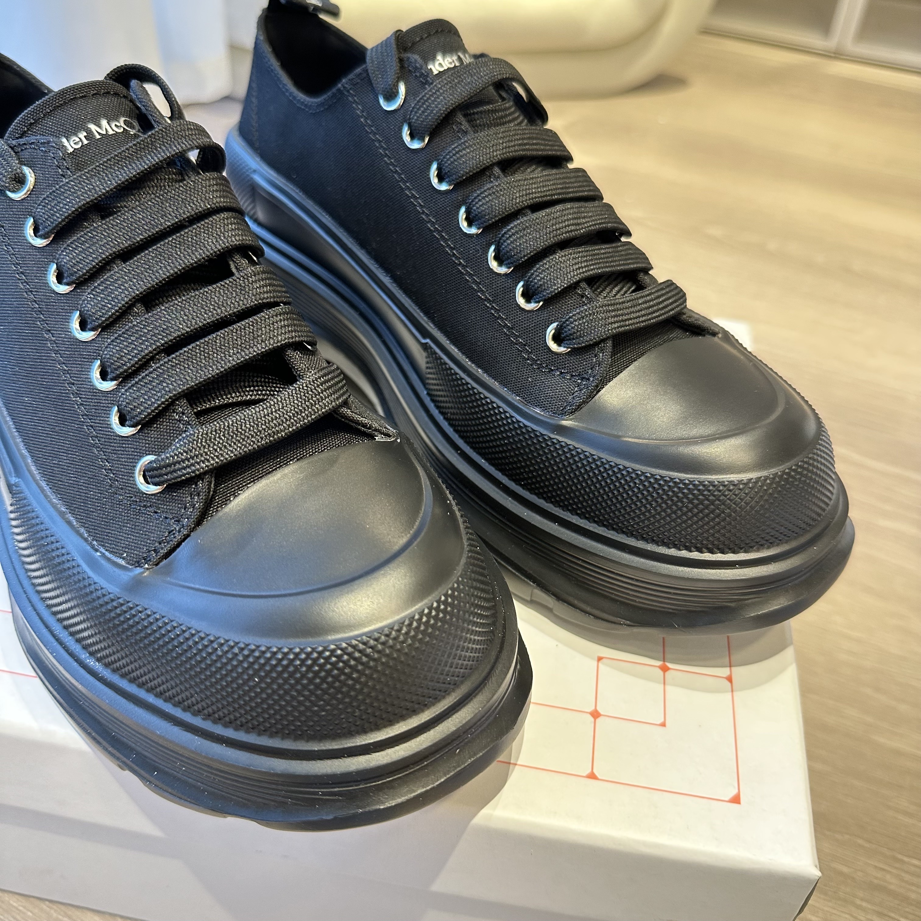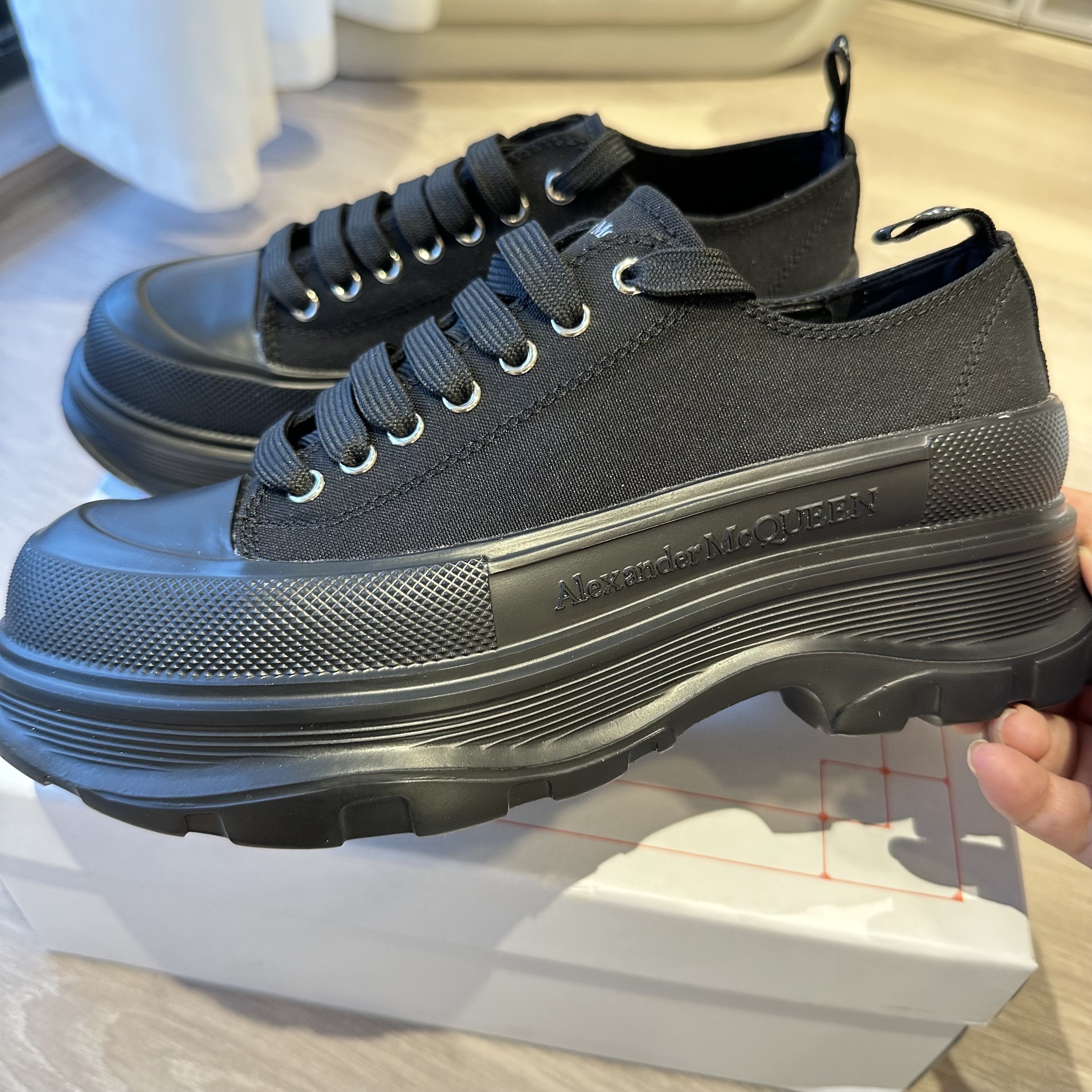 Alexander McQueen 亚历山大麦昆 Treat Slick PUT 系带帆布及踝复古鞋