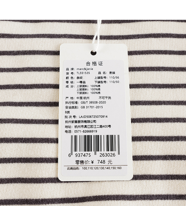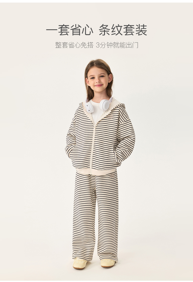 马克珍妮女童舒适省心条纹套装2025年秋装新款551535