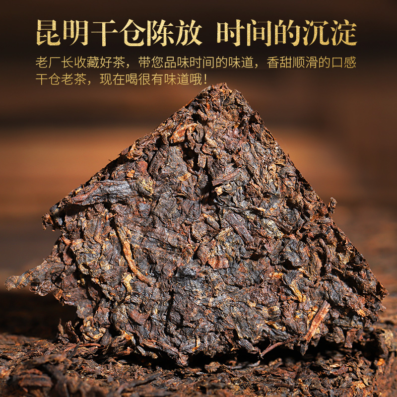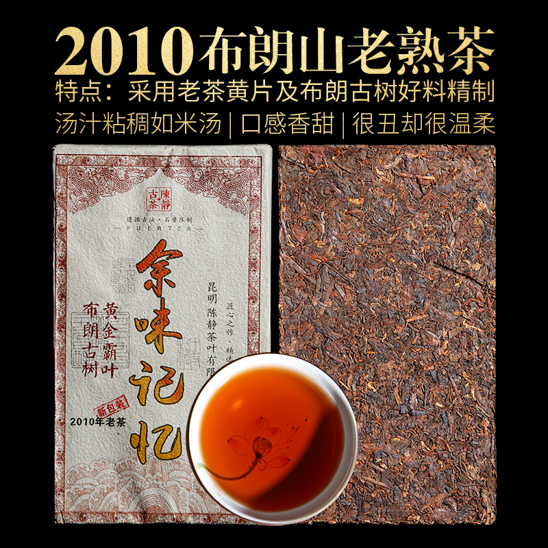 96 普洱茶熟茶 余味记忆黄金霸叶布朗山古树2010年老熟茶1公斤大茶砖