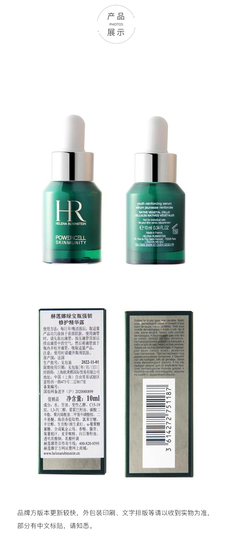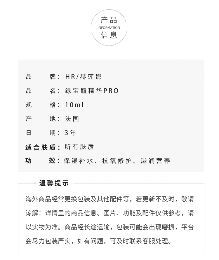 HR/赫莲娜新版修复精华液面部小绿瓶小样10ml/5ml