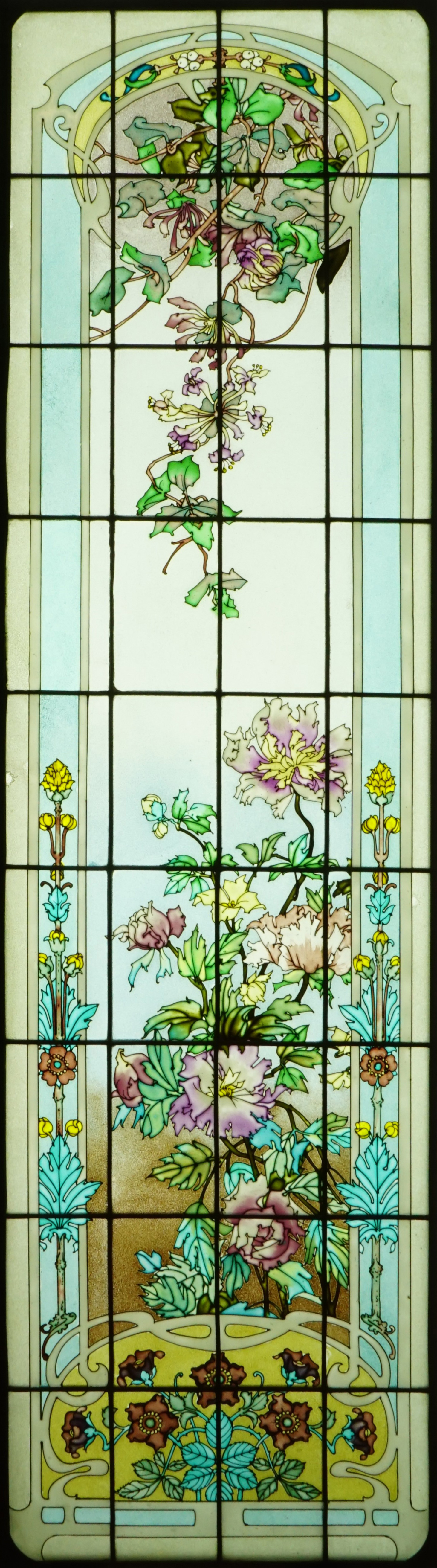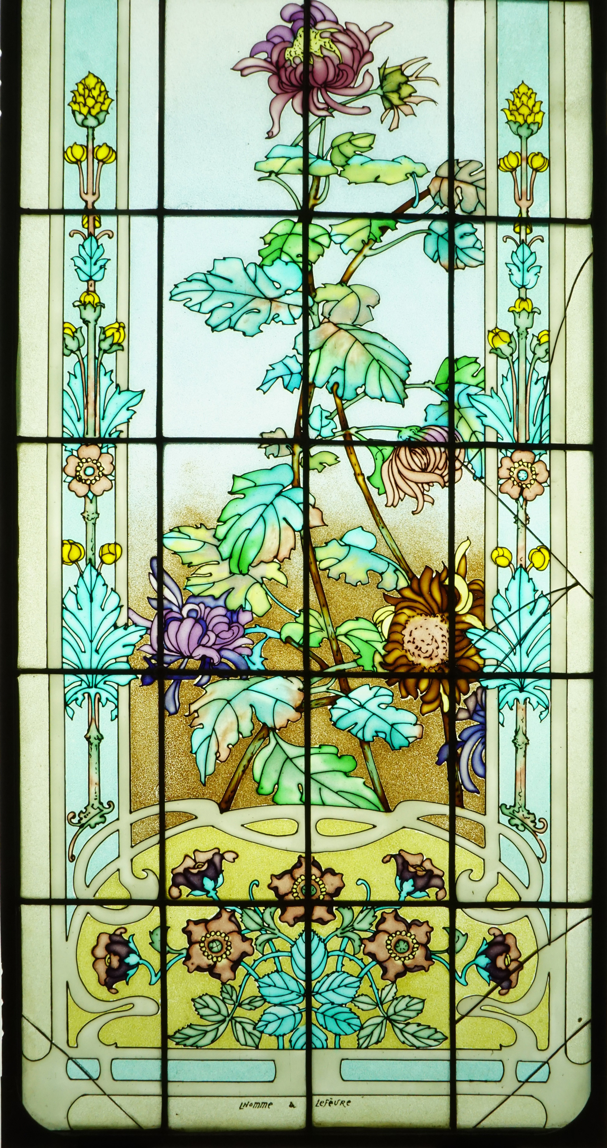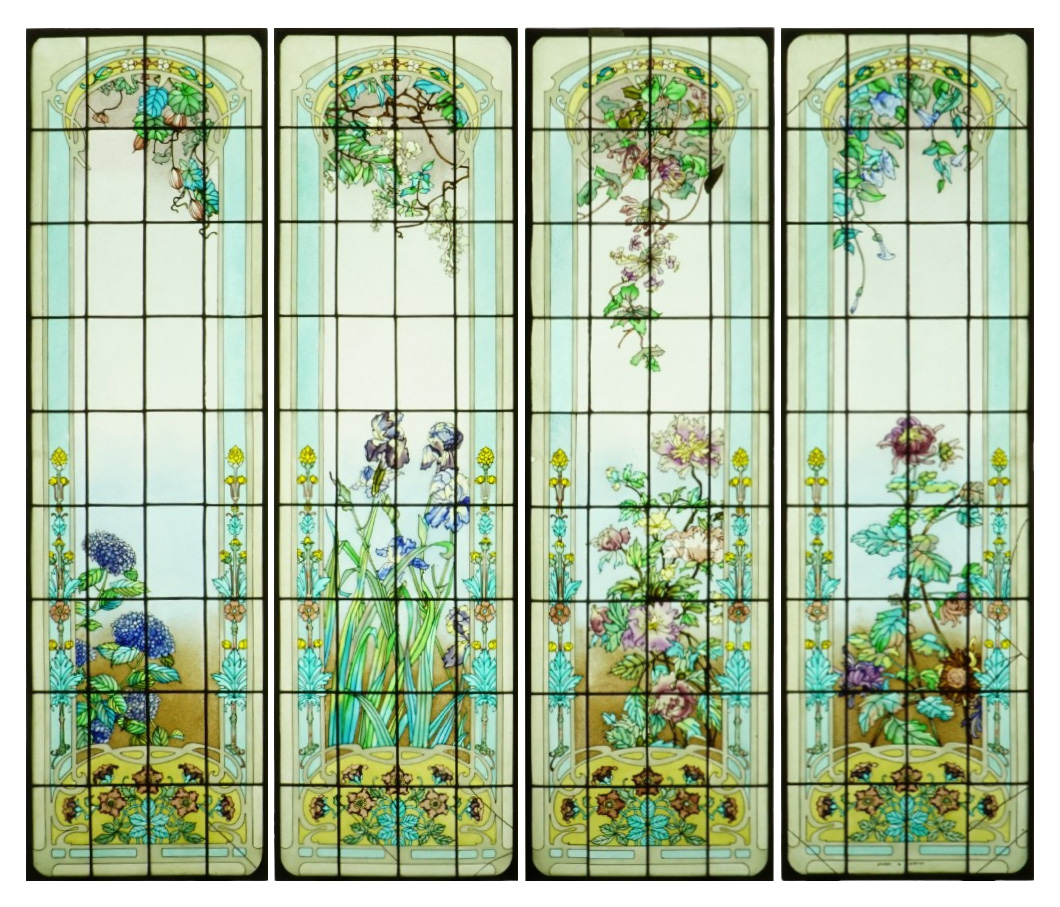 20世纪初法国新艺术风格时期工坊L’Homme & Lefèvre签名出品繁花齐绽主题彩绘玻璃花窗一组