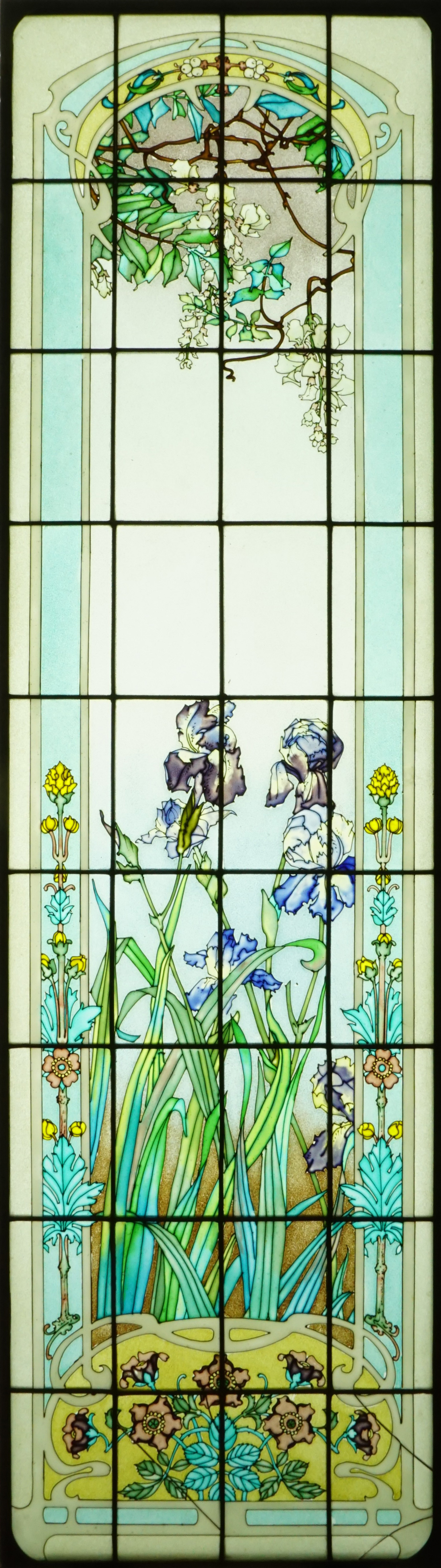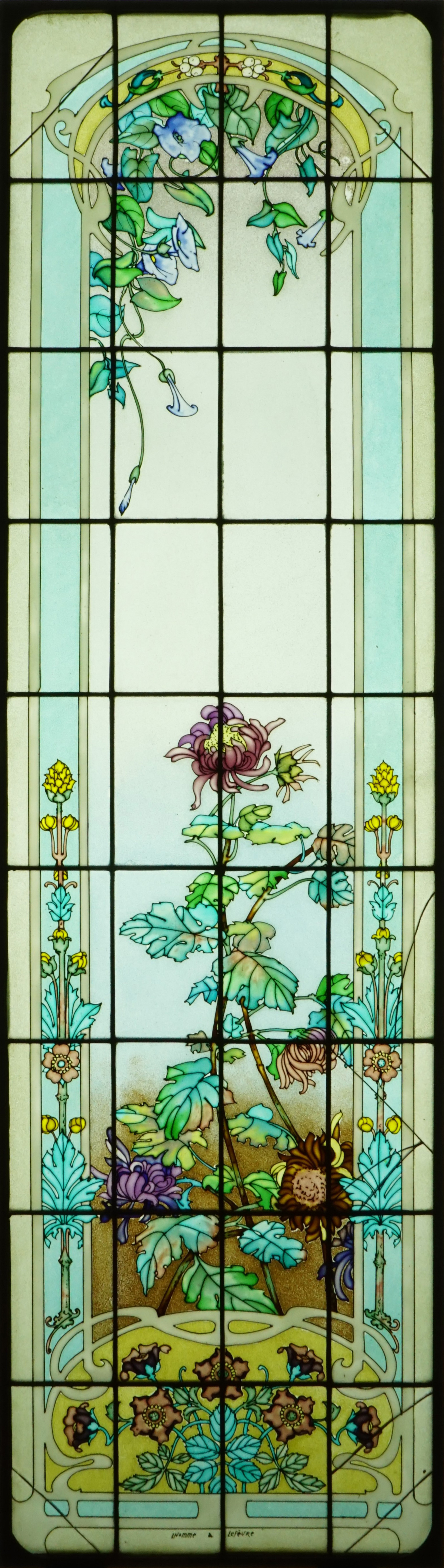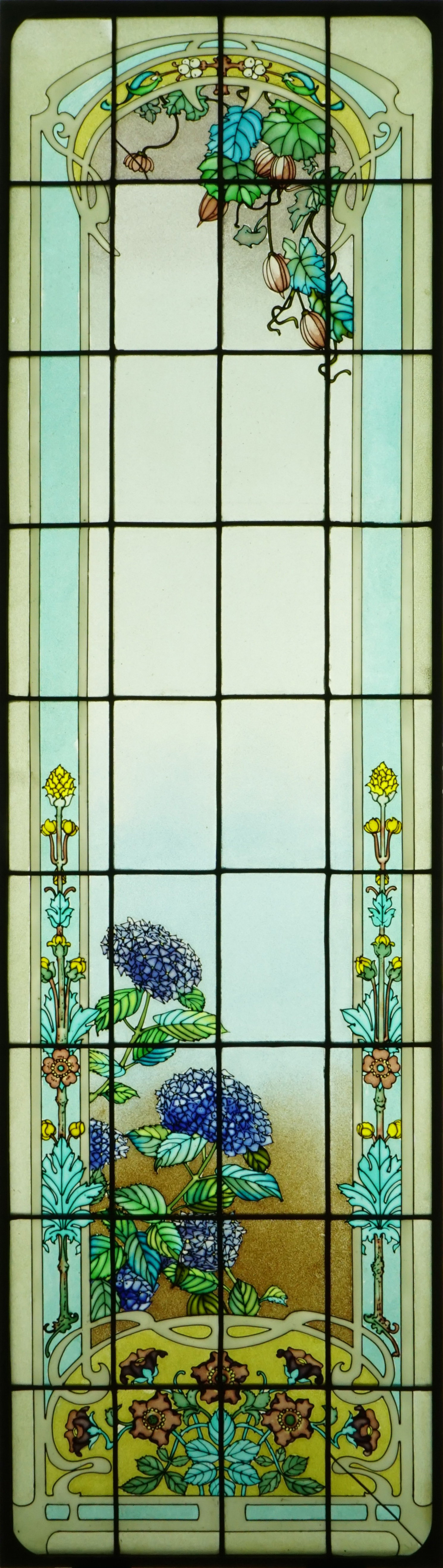 20世纪初法国新艺术风格时期工坊L’Homme & Lefèvre签名出品繁花齐绽主题彩绘玻璃花窗一组