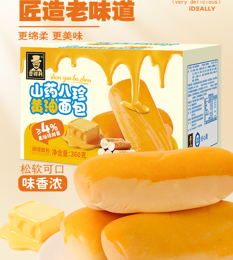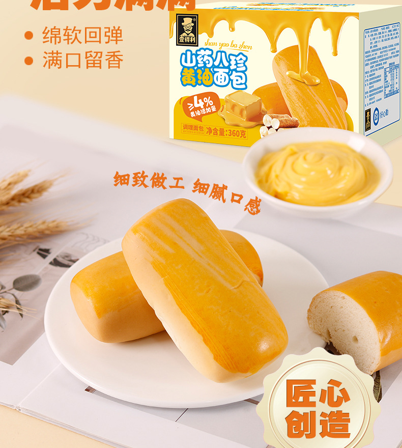 【福利❗️39.9得3箱🔥山药黄油八珍面包】八珍精华揉入面团,兼顾美味与养生,切开后可见绵密内里,奶香浓郁,早餐代餐健身饱腹网红爆款休闲零食整箱QQ