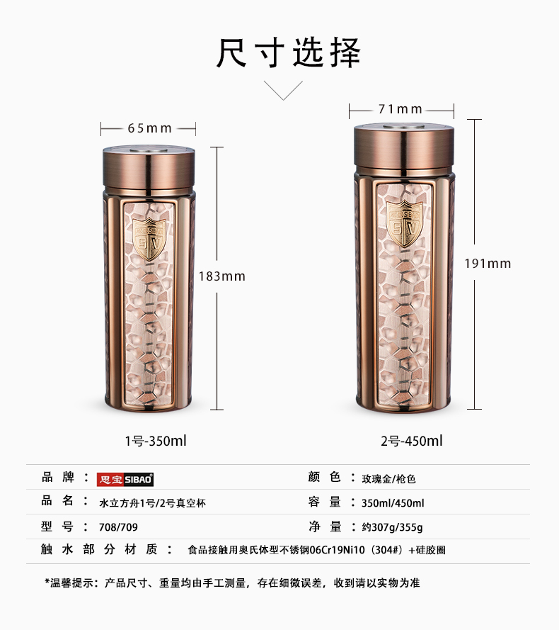 思宝旗舰店新品方舟7/8号纯色清雅商务礼品办公真空保温水杯