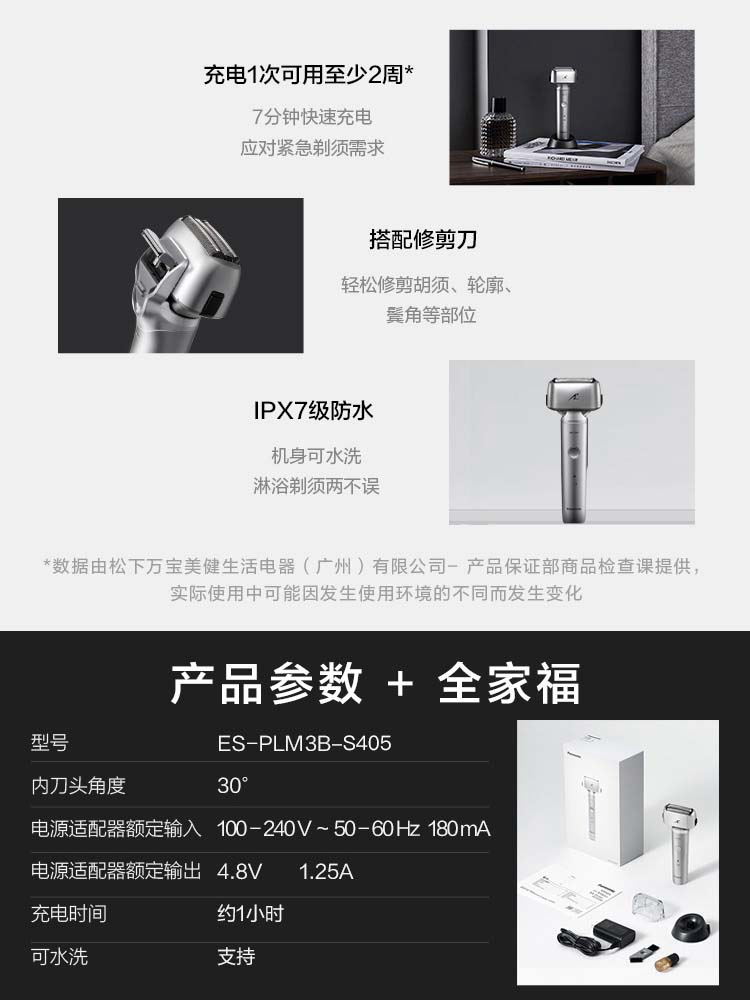 【包邮直发】松下3枚刃剃须刀 ES-PLM3BS405(ZB)
