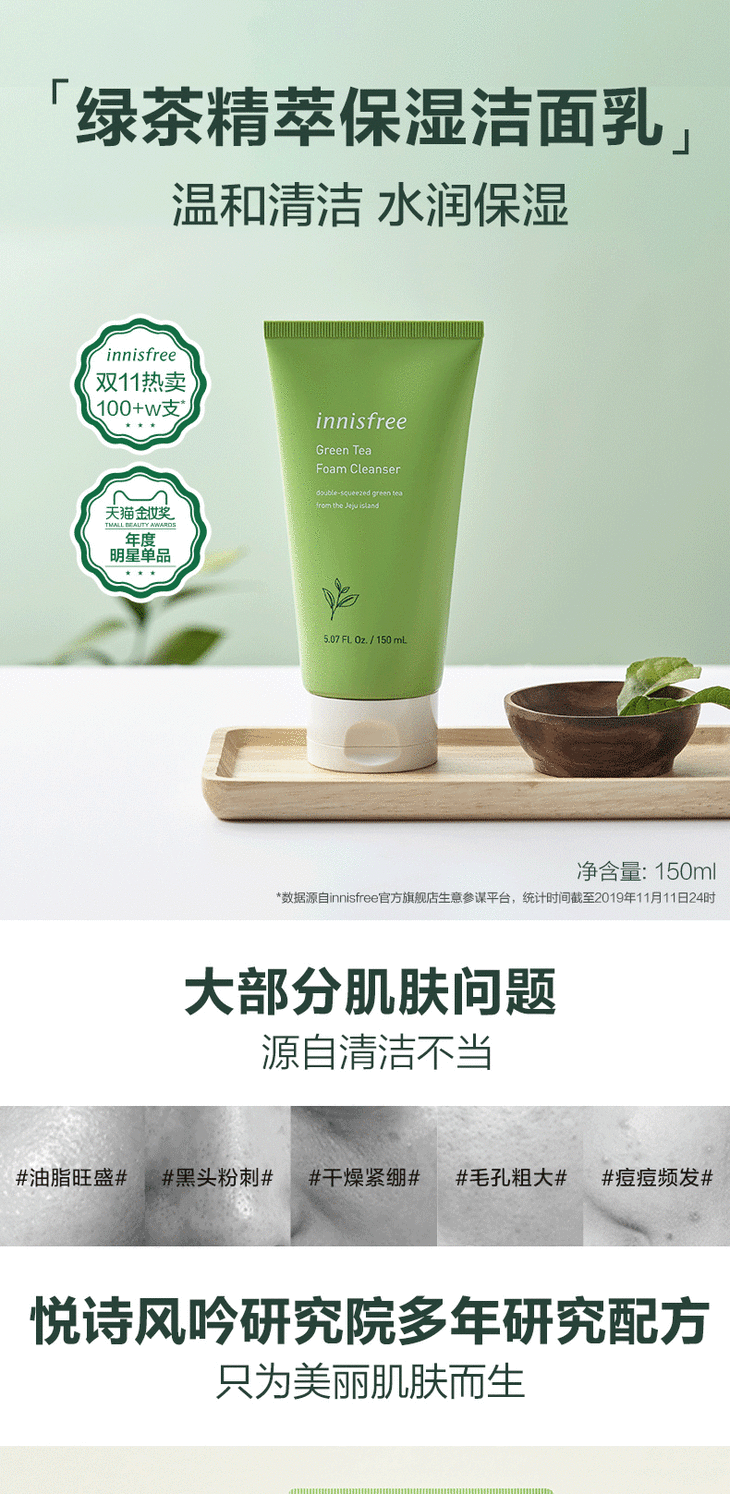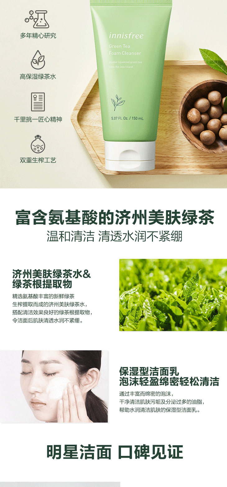 【一般贸易】韩国innisfree悦诗风吟绿茶精萃保湿洗面奶150ml(新老包装随即)