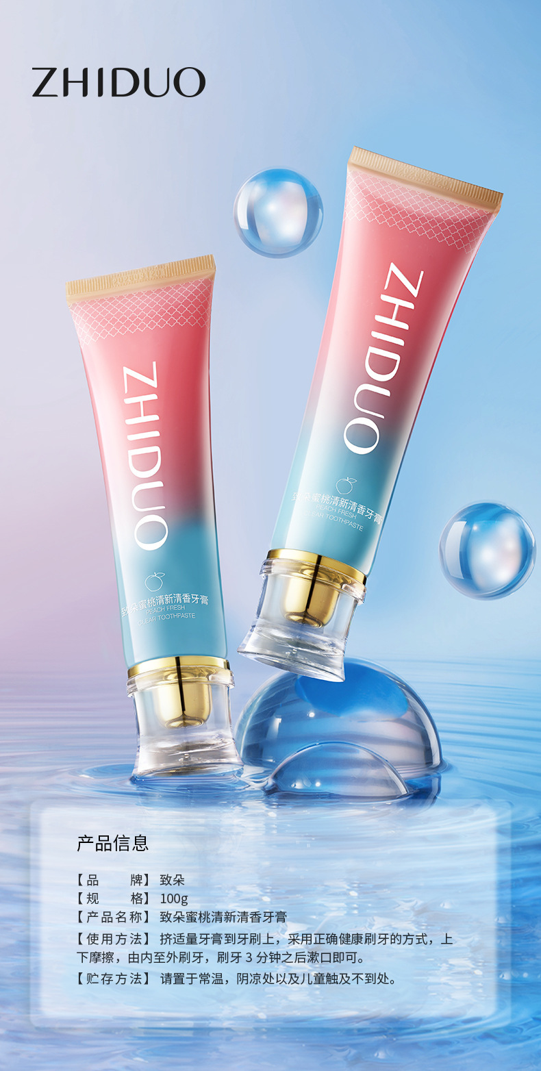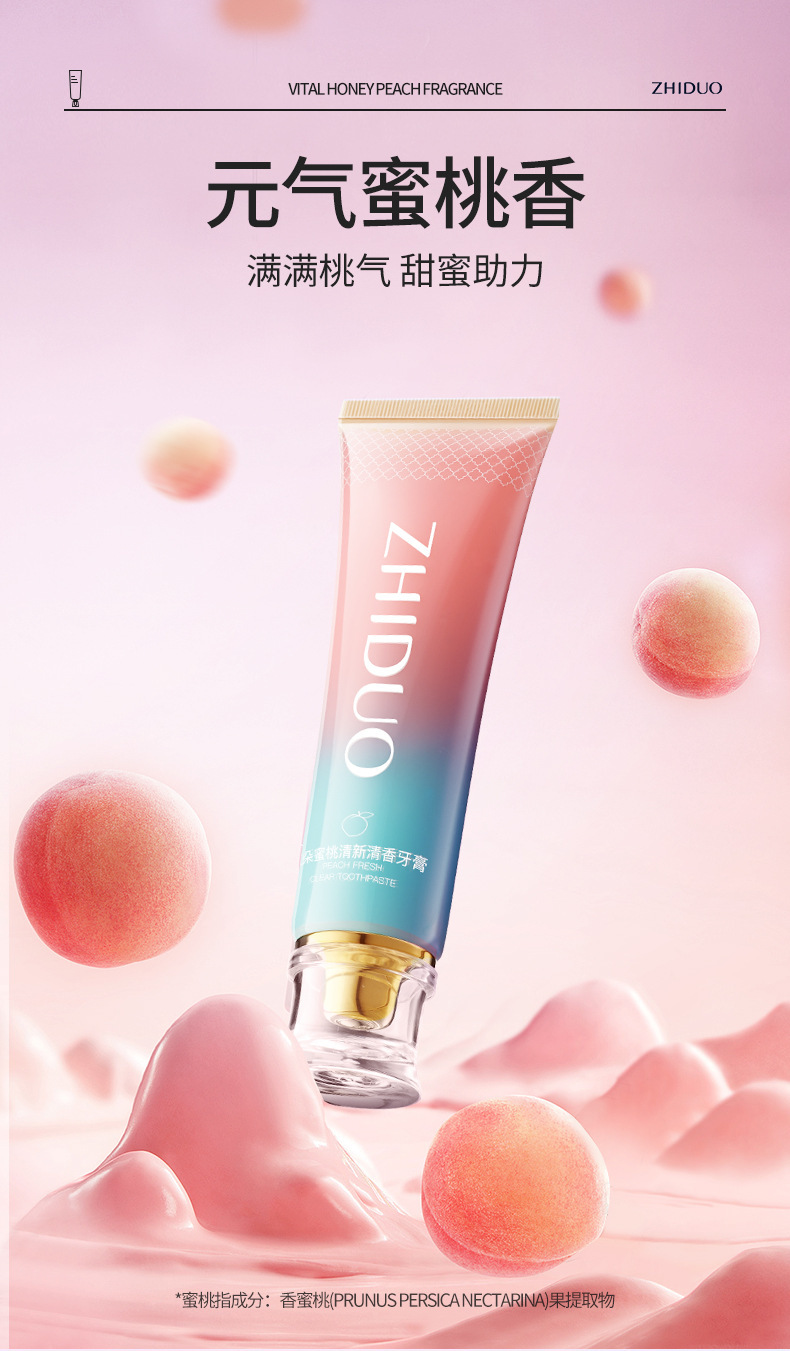 「买1送1!到手两支」致朵蜜桃清新清香牙膏 清新口气清洁牙齿清香水果香味牙膏口腔护理