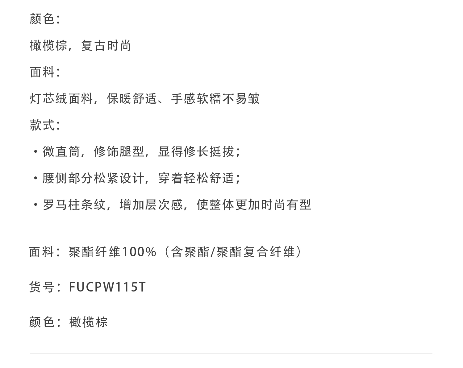 callisto橄榄棕灯芯绒罗马柱条纹休闲裤