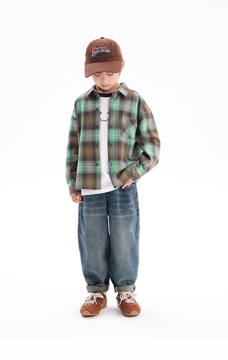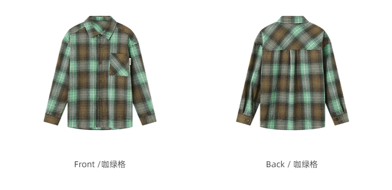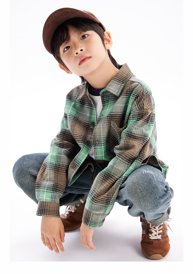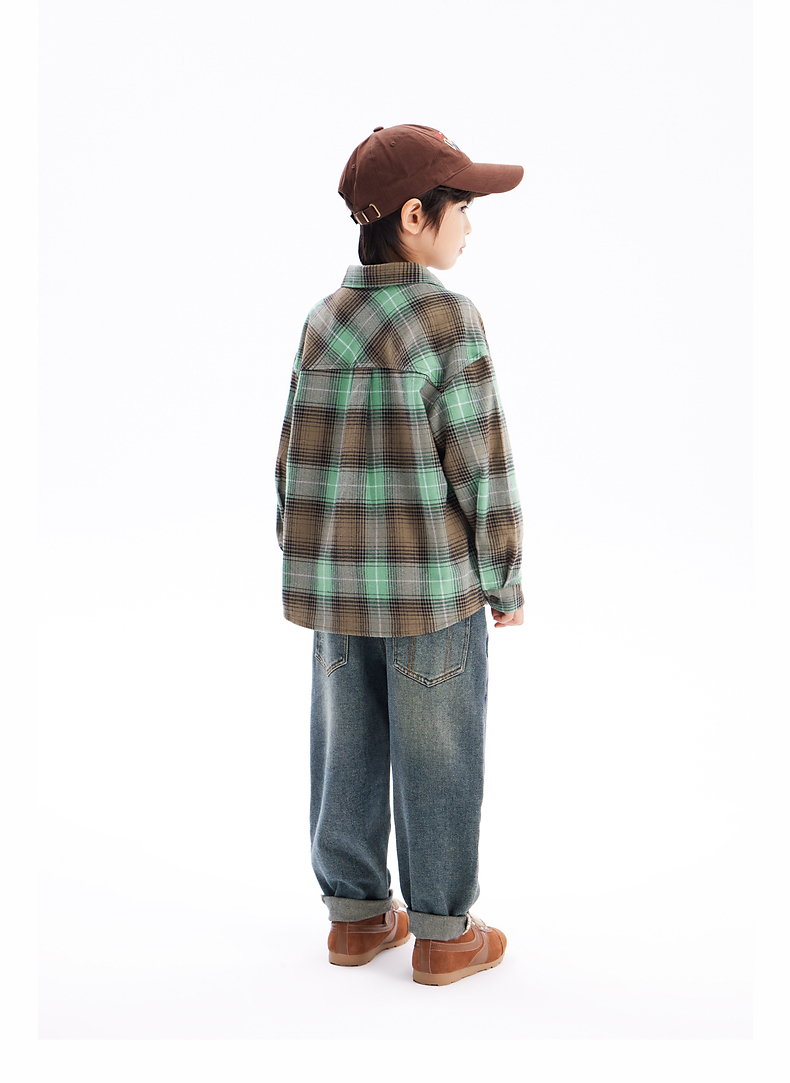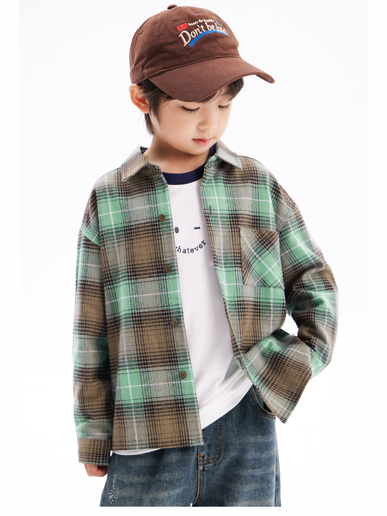 【团购价69.9】多多家男童衬衫春秋季2024新款儿童绿色格纹中大童秋装外套衬衣潮9676