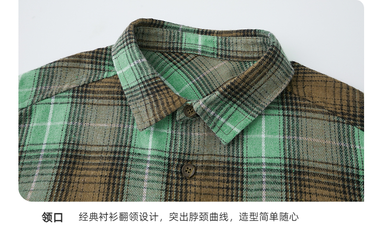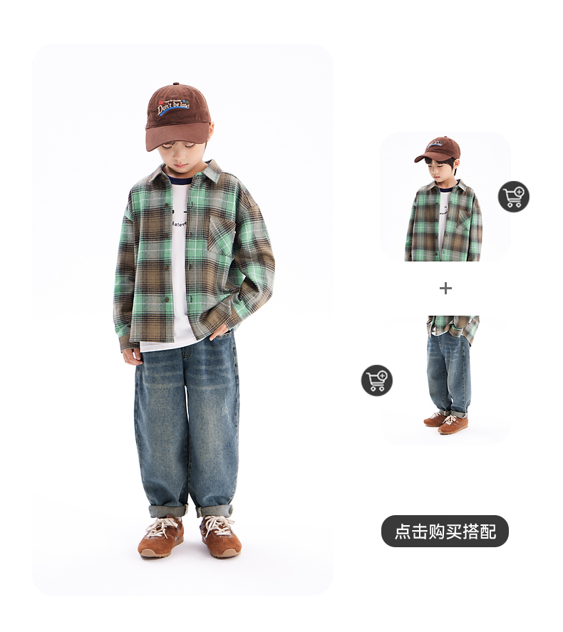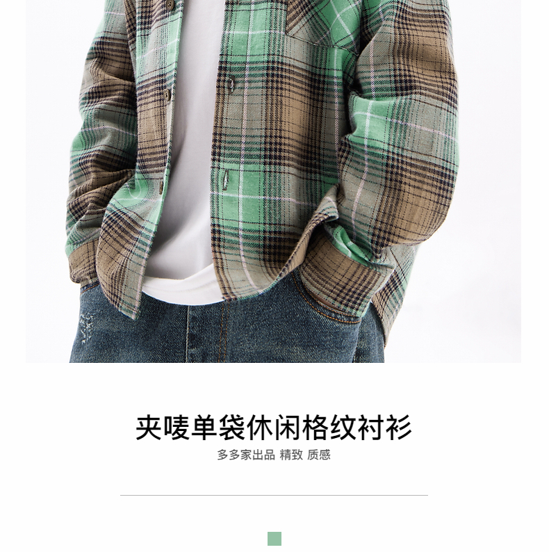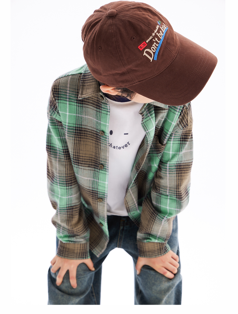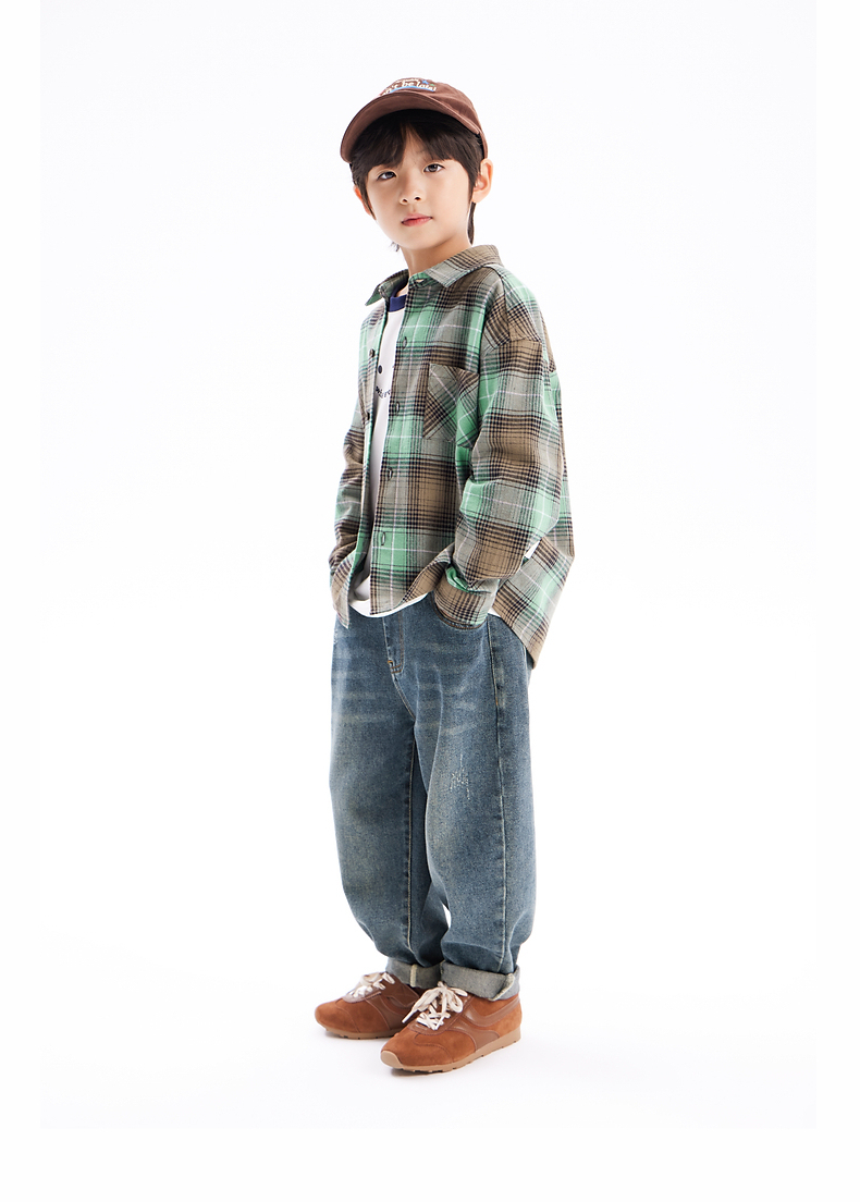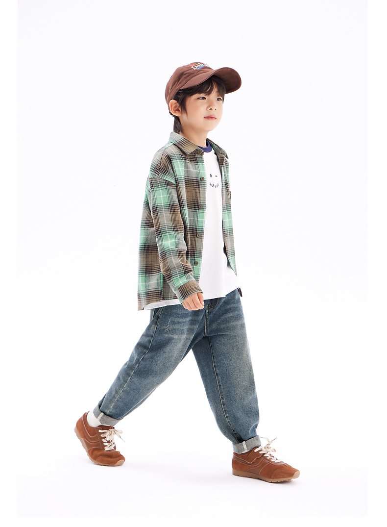 【团购价69.9】多多家男童衬衫春秋季2024新款儿童绿色格纹中大童秋装外套衬衣潮9676