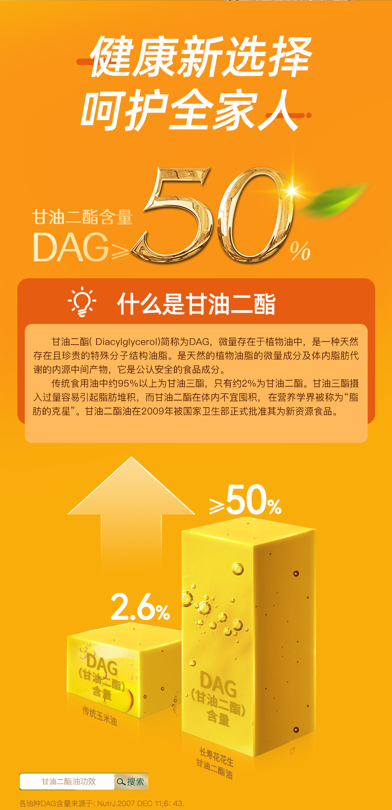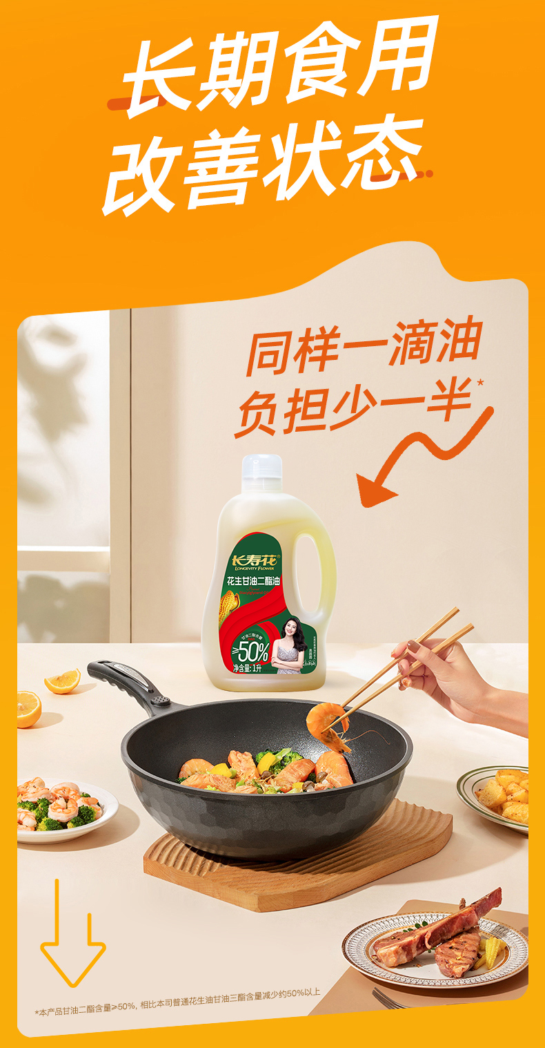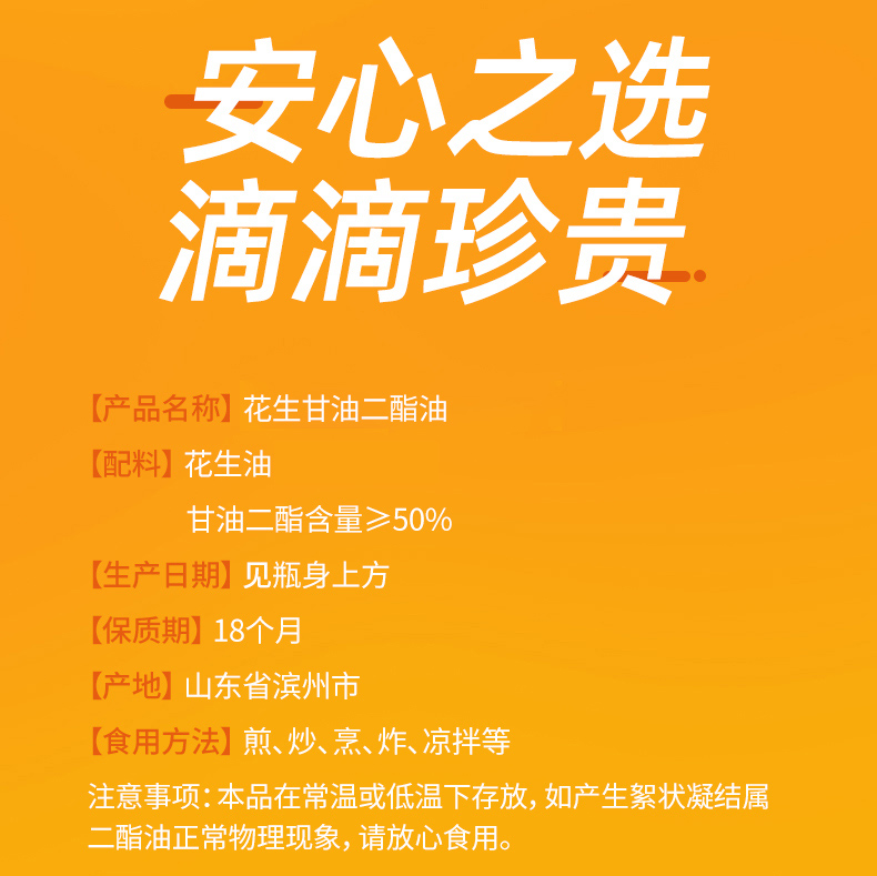 【多规格】长寿花浓香花生二酯油 甘油二酯含量50% 1L