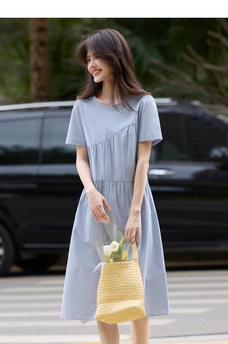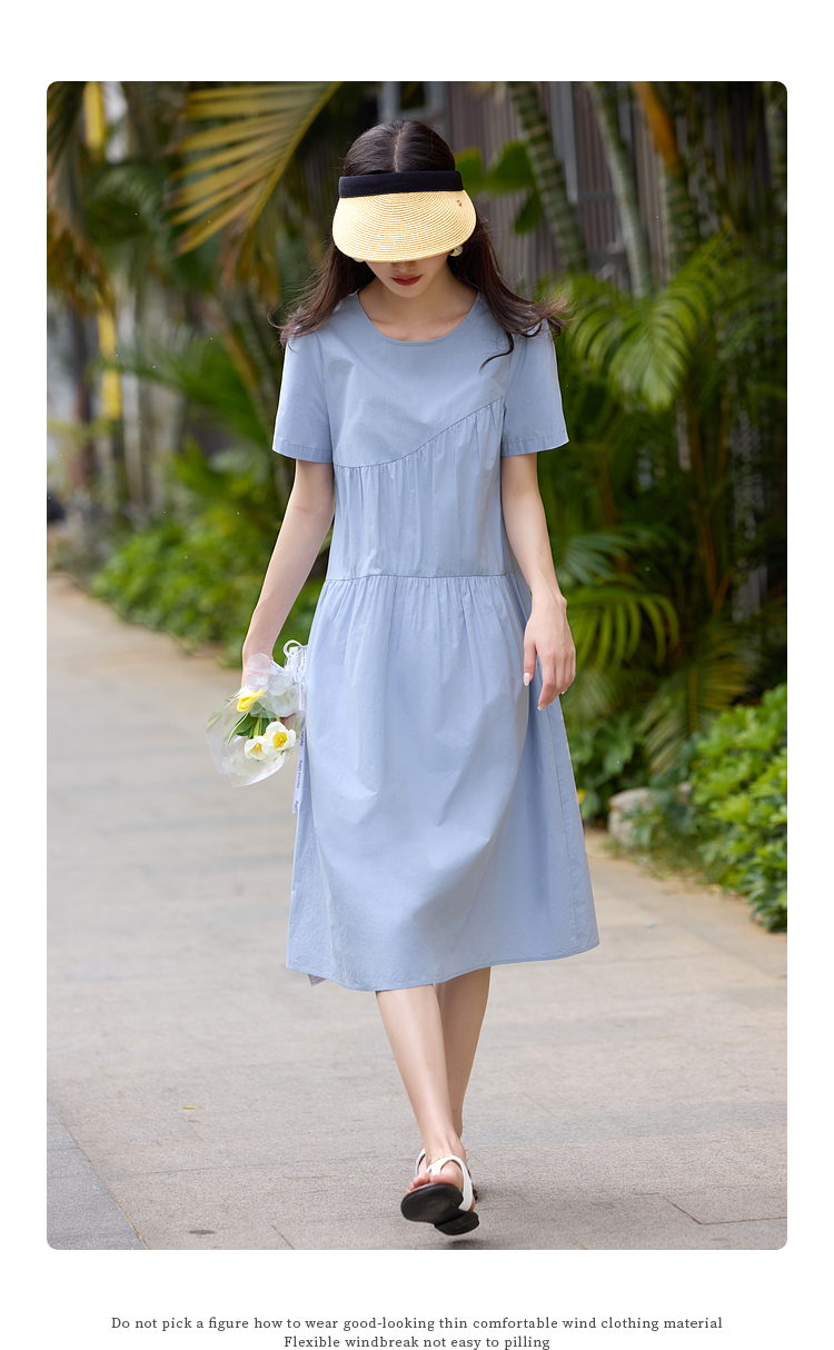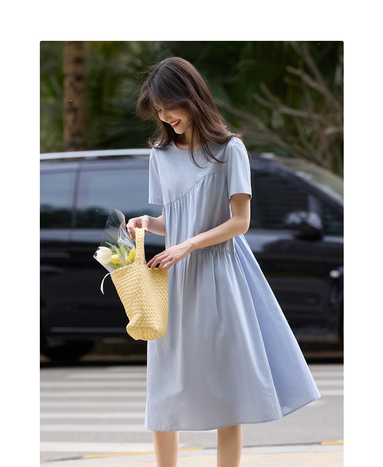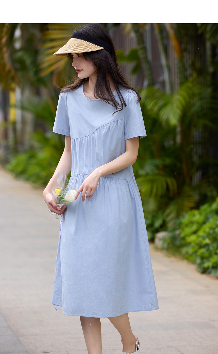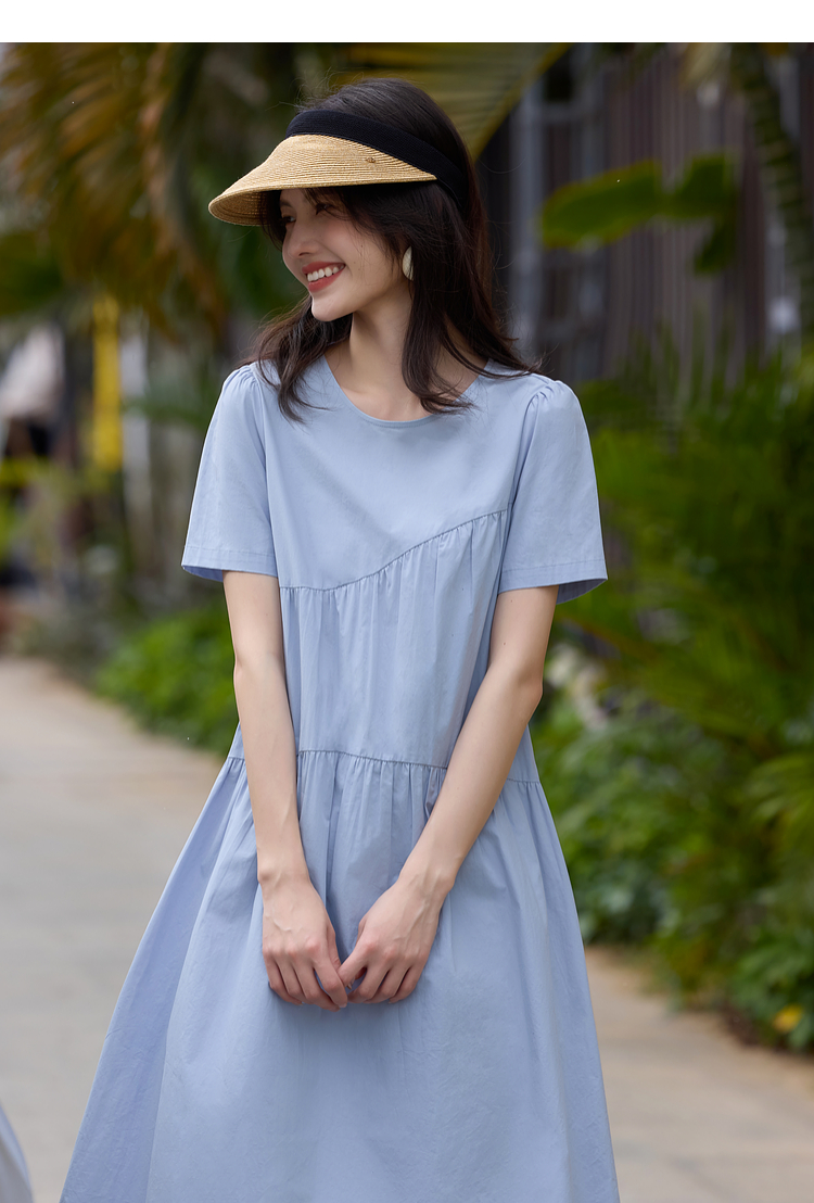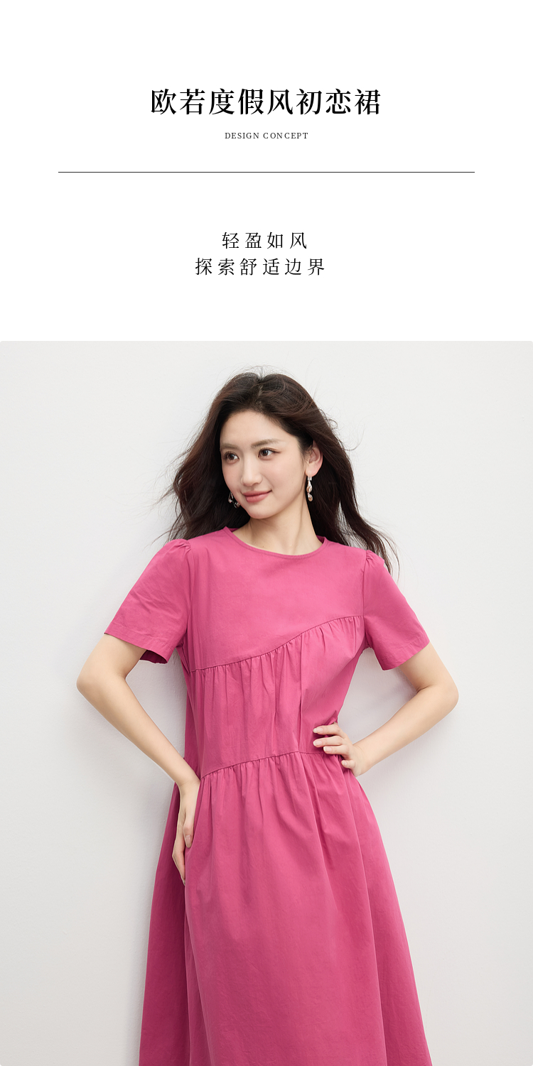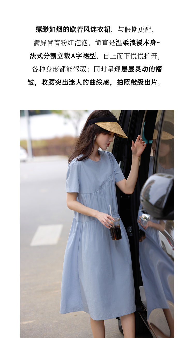 【专属特价】熙世界休闲度假风短袖连衣裙女高级感收腰a字长裙子2025夏季新款