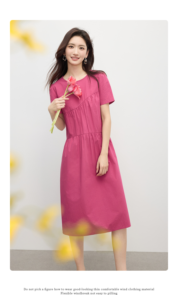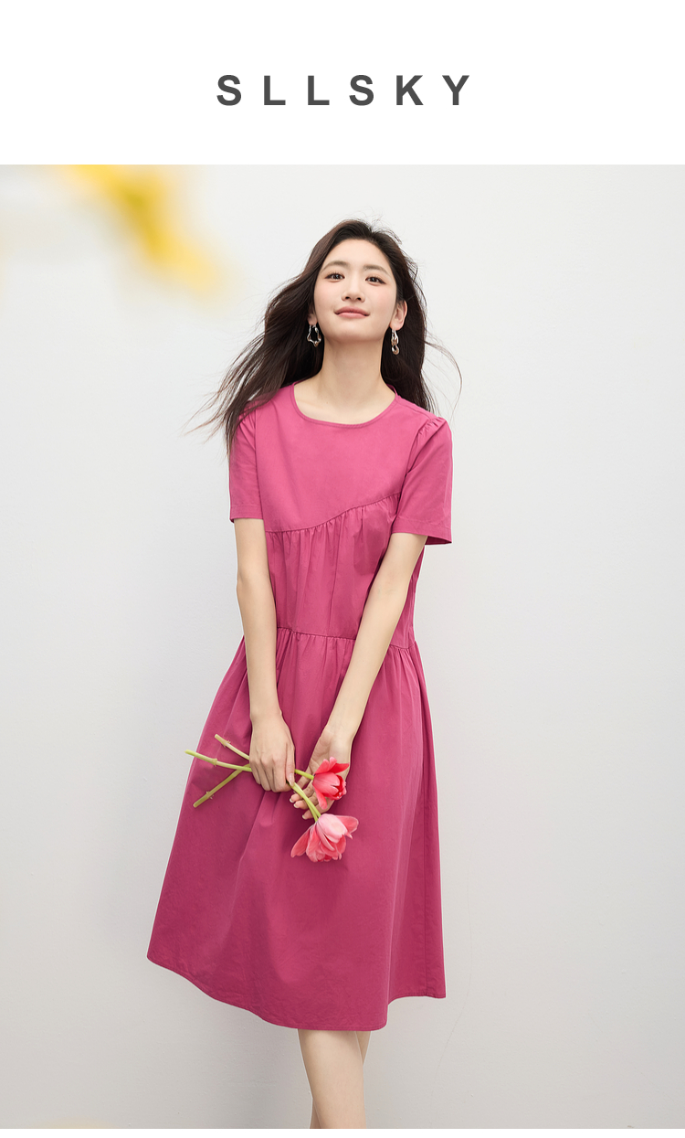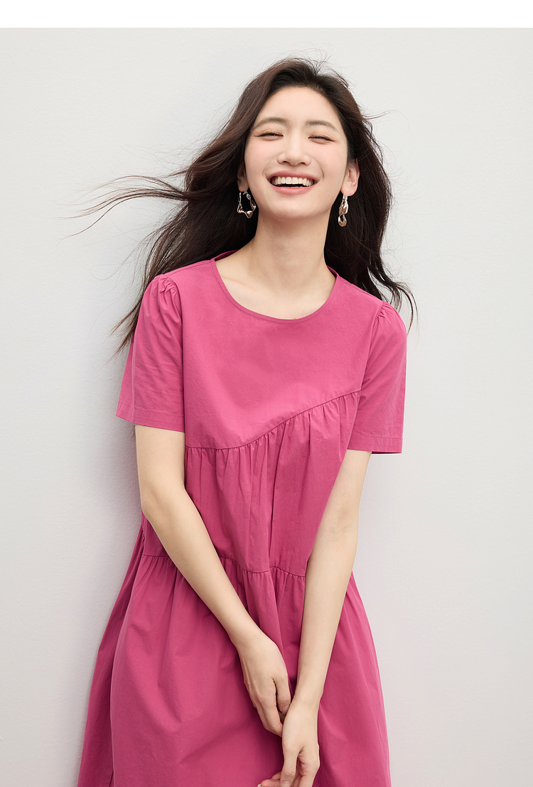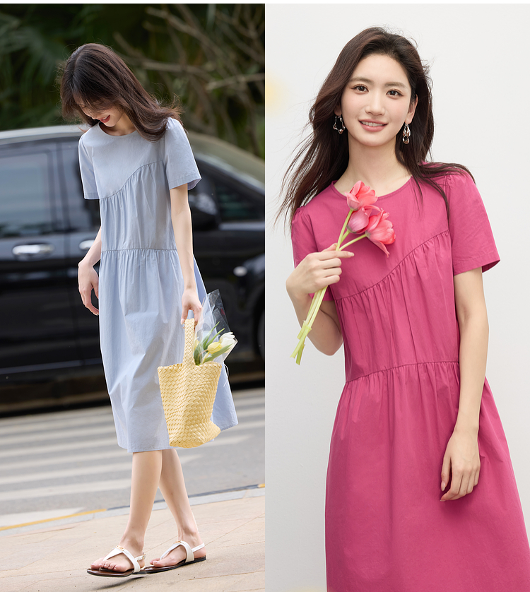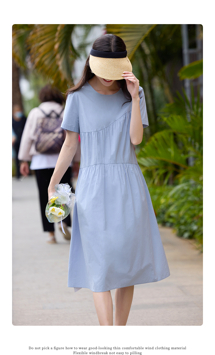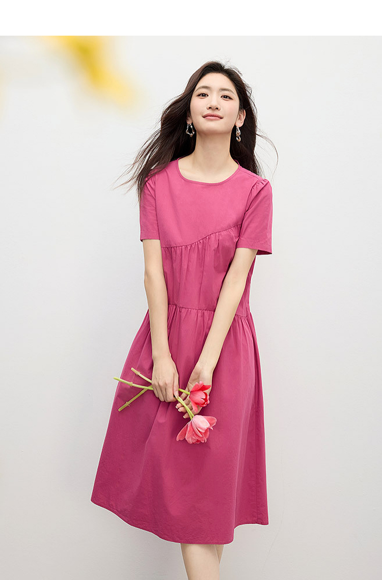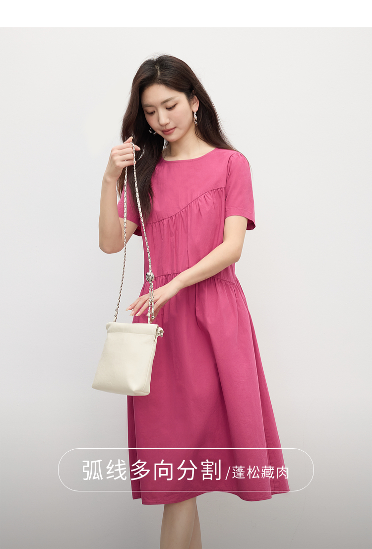 【专属特价】熙世界休闲度假风短袖连衣裙女高级感收腰a字长裙子2025夏季新款
