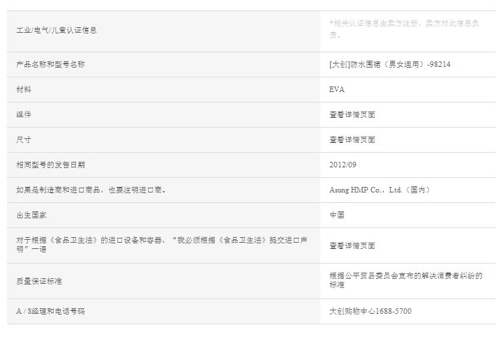 大创防水围裙(男女通用)-98214 Daiso Waterproof apronJPY带授权招加盟代理