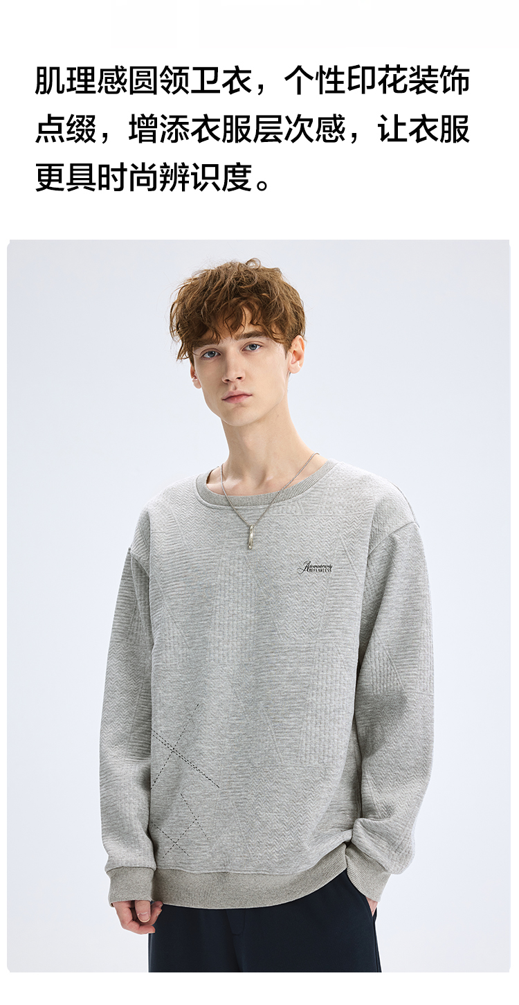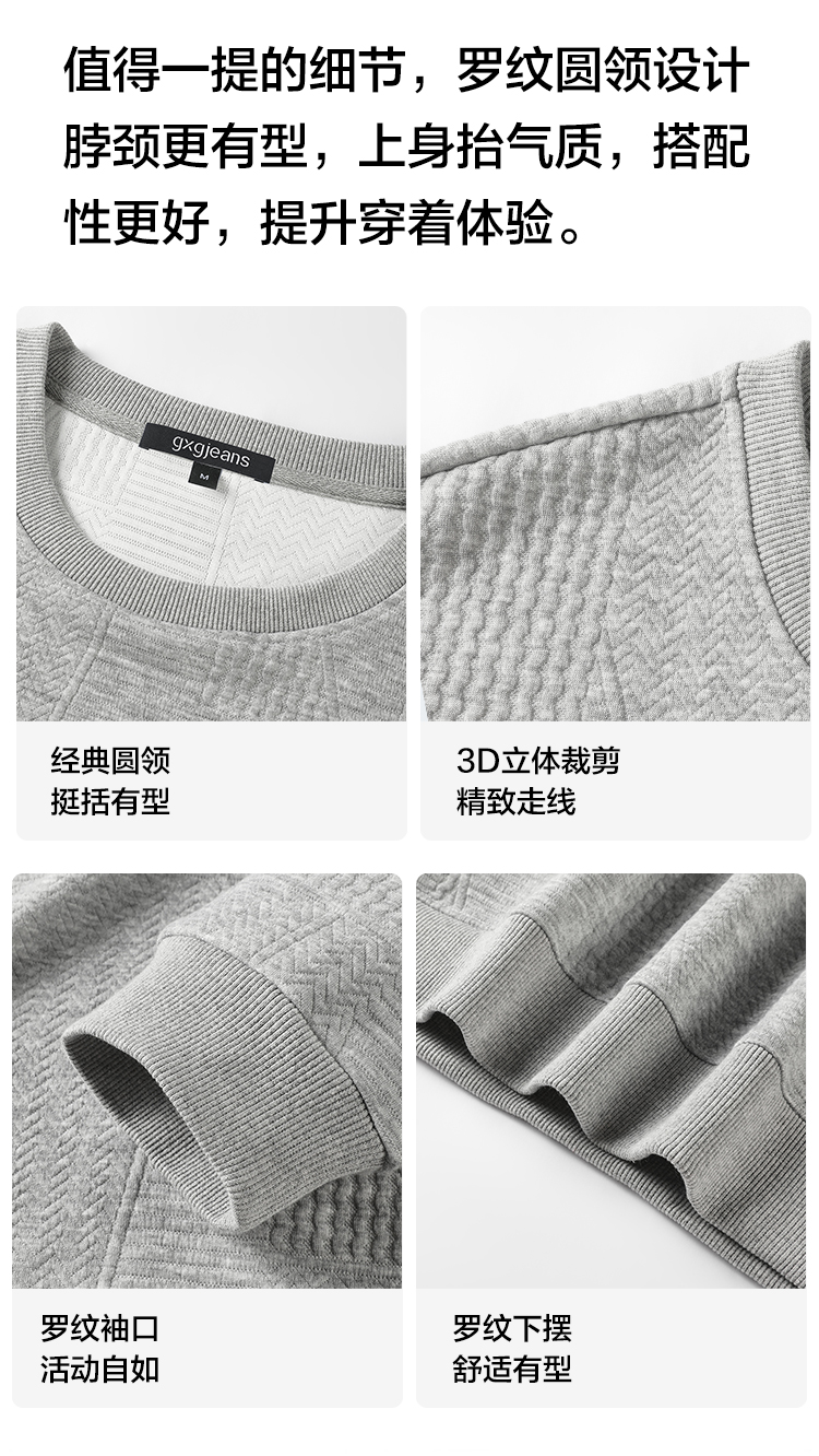 gxgjeans 男装【肌理感面料】男士圆领卫衣25秋款简约舒适百搭青少年打底衫K&C