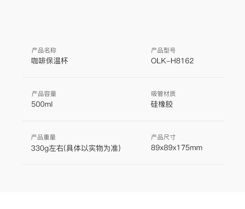 olayks立时 不锈钢双节咖啡保温杯500ml BWB00201