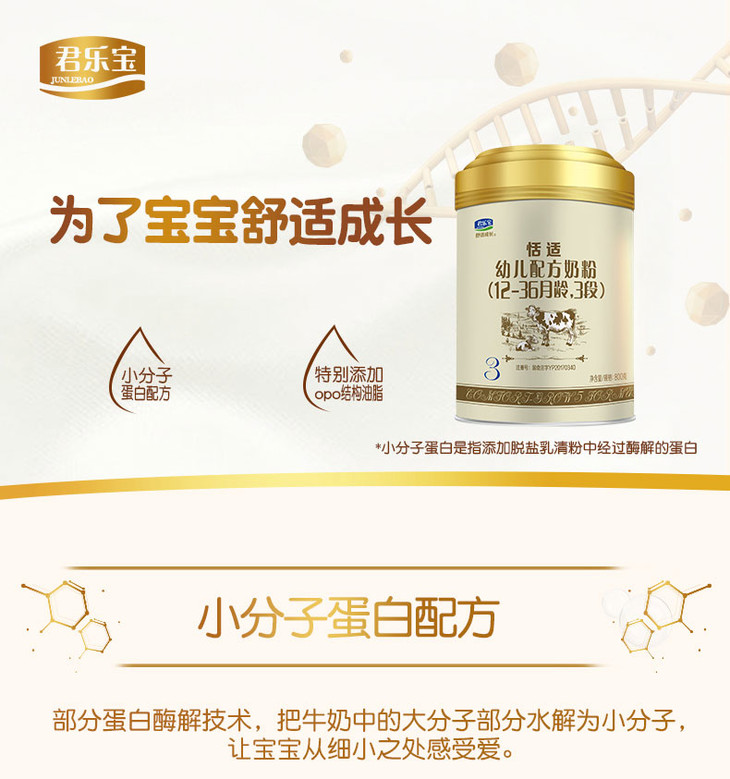 君乐宝恬适幼儿配方奶粉3段800g